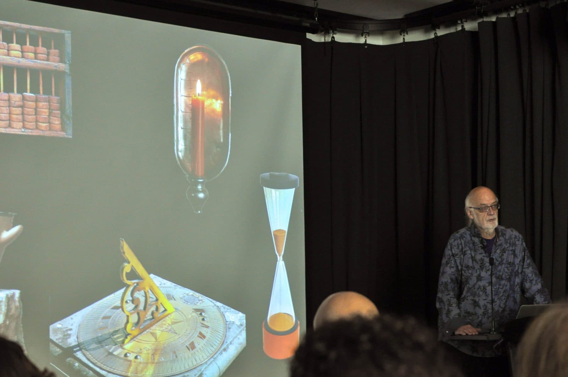 “And then we have the marriage in the heavens[…]we have a clock and a calculator. Had they decided to get married, they’d beget computers,” said Experimental Media and Performing Arts Center Director Johannes Goebel in the introduction of his talk.