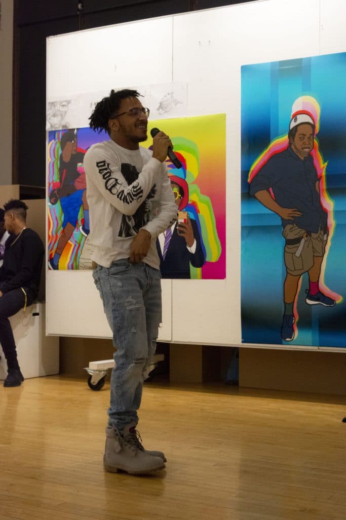 The Black Student Association held its second art show of the year on Friday. This show focused more on live performances, rather than still art. Student artist Zaire Wilson ‘ 20 or “Zeitgeist” performed to begin the show, with original songs “Yamcha” and and “Reading is Fundamental.” The crowd dispersed to view the art for about a half an hour before the fashion show began. Models from BSA walked through the room to showcase outfits made by members of the club. Then, they held a “Best Dressed” competition for attendees of the event. The show was closed by University of Albany student artist, Marc-Baze.