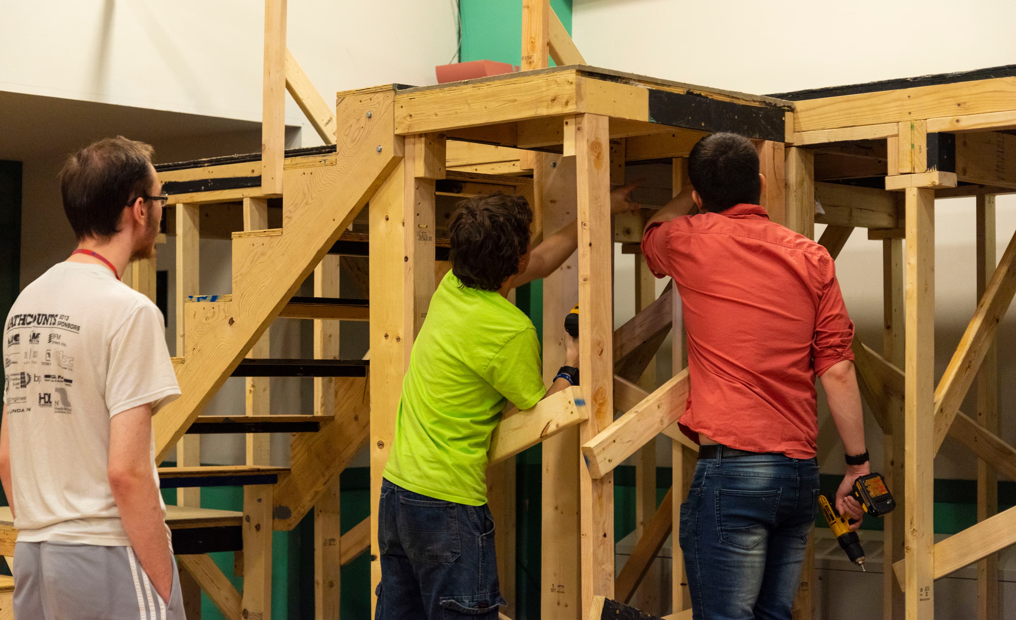 Speaking of power tools, there were several on the stage where the carpentry work was going on, including saws and pneumatic drills. If you have even the faintest inclination for carpentry, you’ll feel at home here. The night I attended, I helped them build one of the load-bearing walls for the back of their multi-story stage. As the night droned on, we drilled in one block of wood after another, taking careful measurements beforehand to ensure that everything would go according to plan. Finally, at the end of the night, most of that wall was complete. Throughout the night, the camaraderie between members of the Players was palpable and kept the work from getting monotonous.