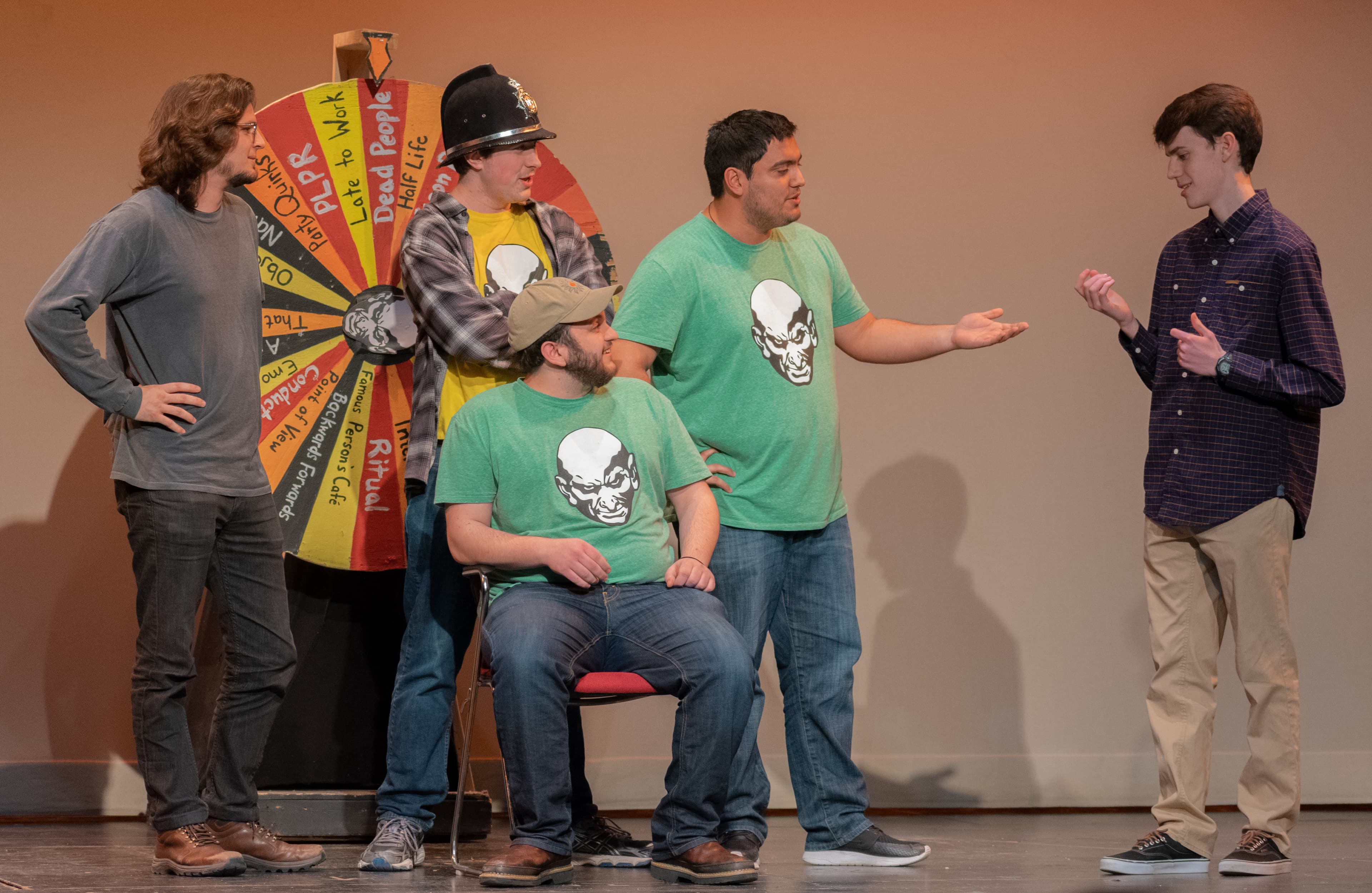 My first question was about how a student joins the troupe. The process start with them hosting improv workshops—approximately one each semester—to teach students the basics. If a member notices that someone is doing well, they will ask them to become an apprentice. Apprentices go to more practices to learn the details of all the improv games. At this point in my conversation with them, each member explained how they initially got involved with improv. Answers varied, but all had a common thread of experience with acting or improv in high school.
