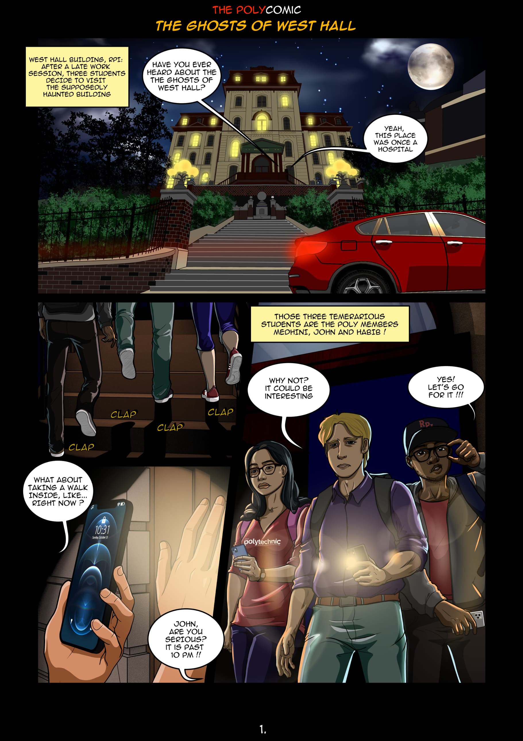 Poly ComicsThe ghosts of West HallExploring West Hall at night is a rite of passage at RPI. In the newest Poly comic, three students have a strange encounter in the rumored-to-be-haunted building.By Jack Zhu and Habib NahoutaJack ZhuEditorial/Opinion CoordinatorHabib NahoutaOctober 31, 2021Story by Jack Zhu and artwork by Habib NahoutaJack Zhu