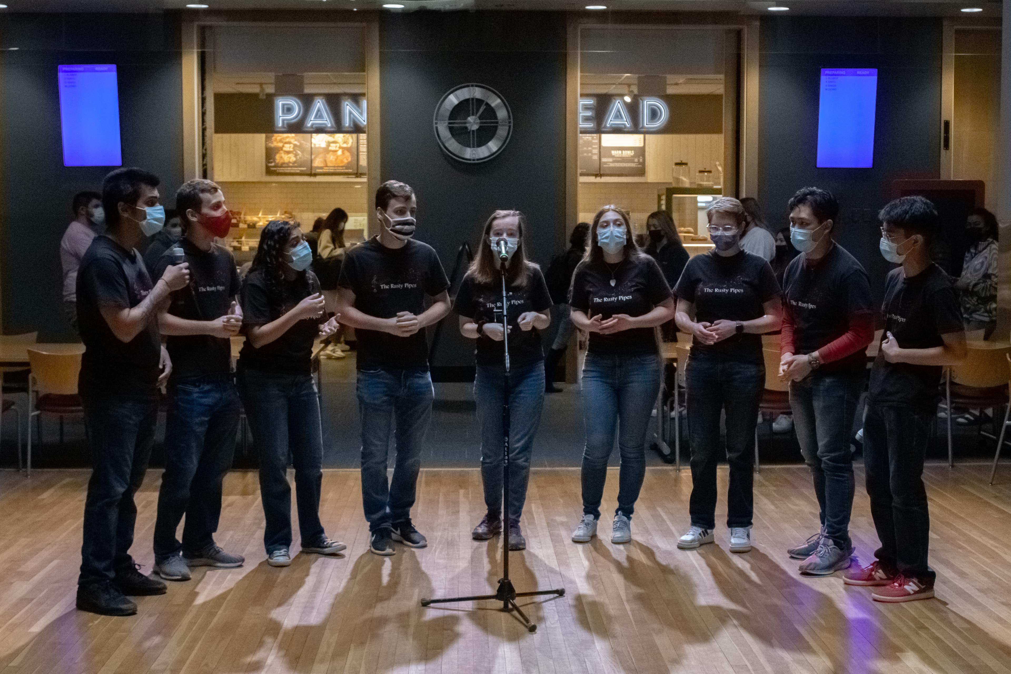 During the day there were many performances, including ones from the Ballroom Dancing Club and The Rusty Pipes a cappella group. Many students enjoyed these performances while eating lunch and relaxing in the Union. The Rusty Pipes sang an amazing a cappella version of “when the party's over” by Billie Ellish, amongst other songs. The ballroom dancers danced to “Glad You Came” by The Wanted and “All You Wanna Do” from the musical Six.