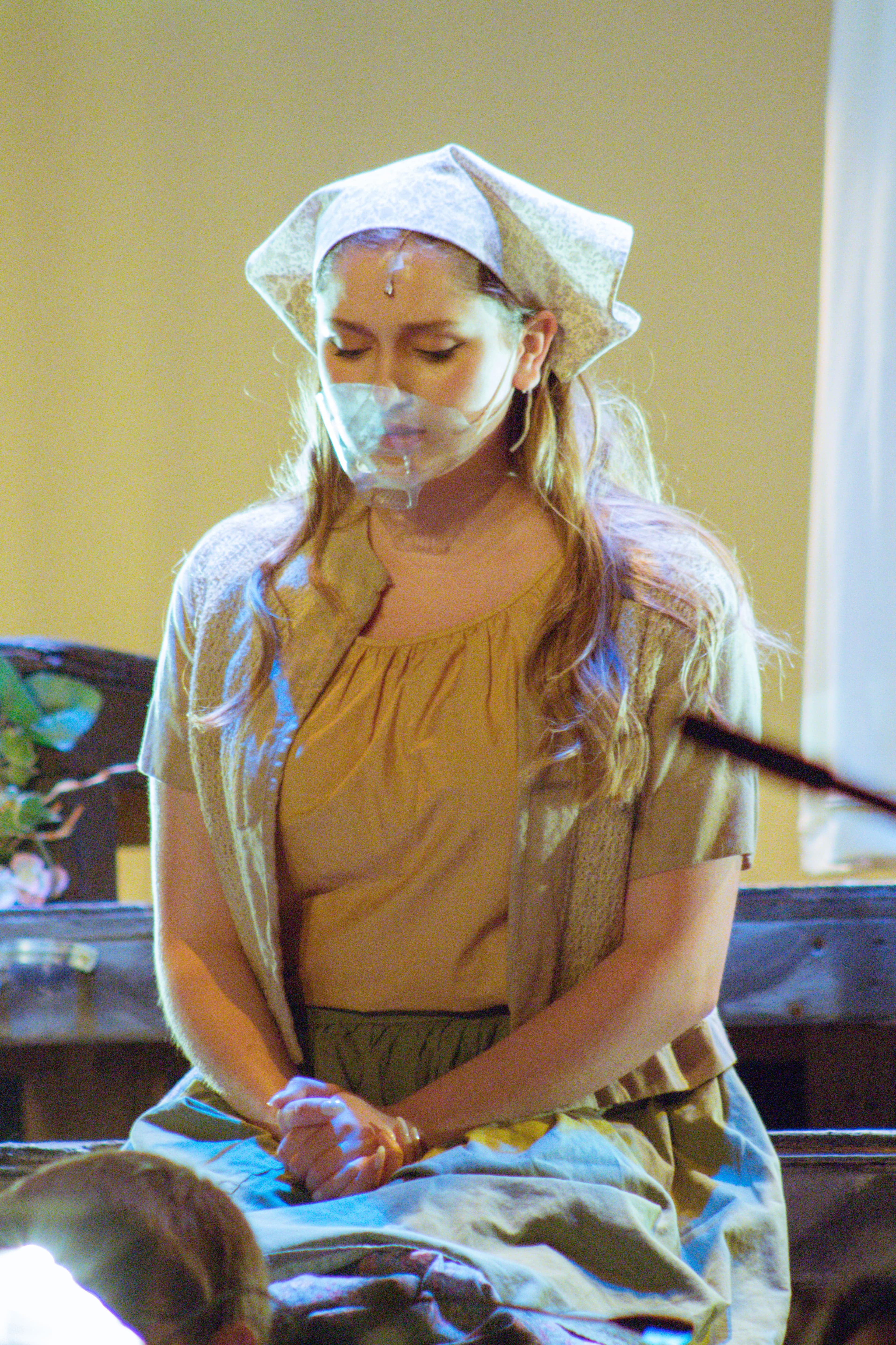 As the run through began, the actors arrived on the stage in a variety of different styles. Two outfits that stuck out were the purple suit worn by one of Cinderella's siblings and the ornate, pearly white dress worn by Rapunzel. During the sound check, we got a small peek into what kind of performance we were in for, as each mic test came with a small snippet from whichever song they were supposed to perform later.