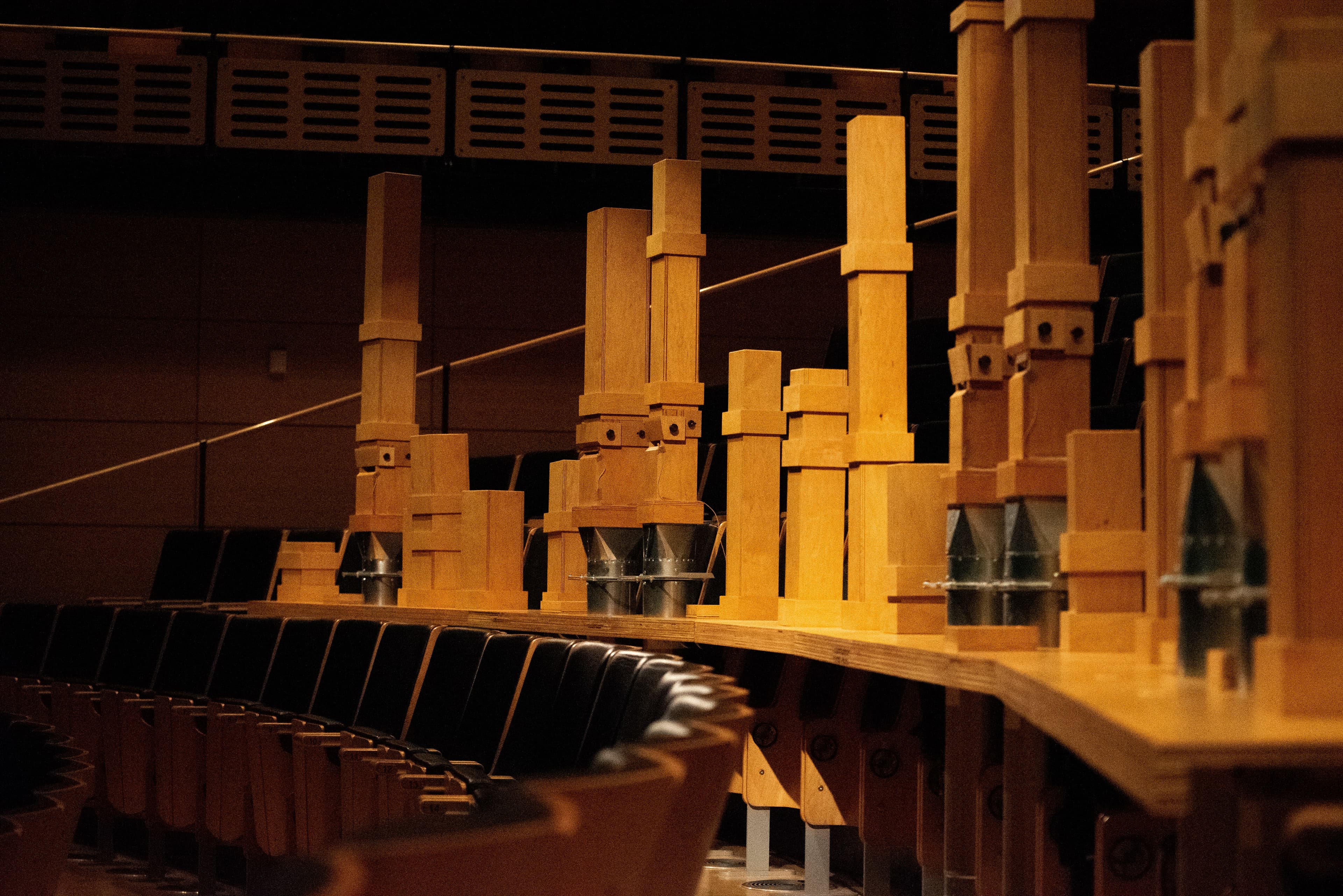 We arrived at EMPAC 30 minutes before showtime. There, we were greeted with the low humming of flue pipes warming up.