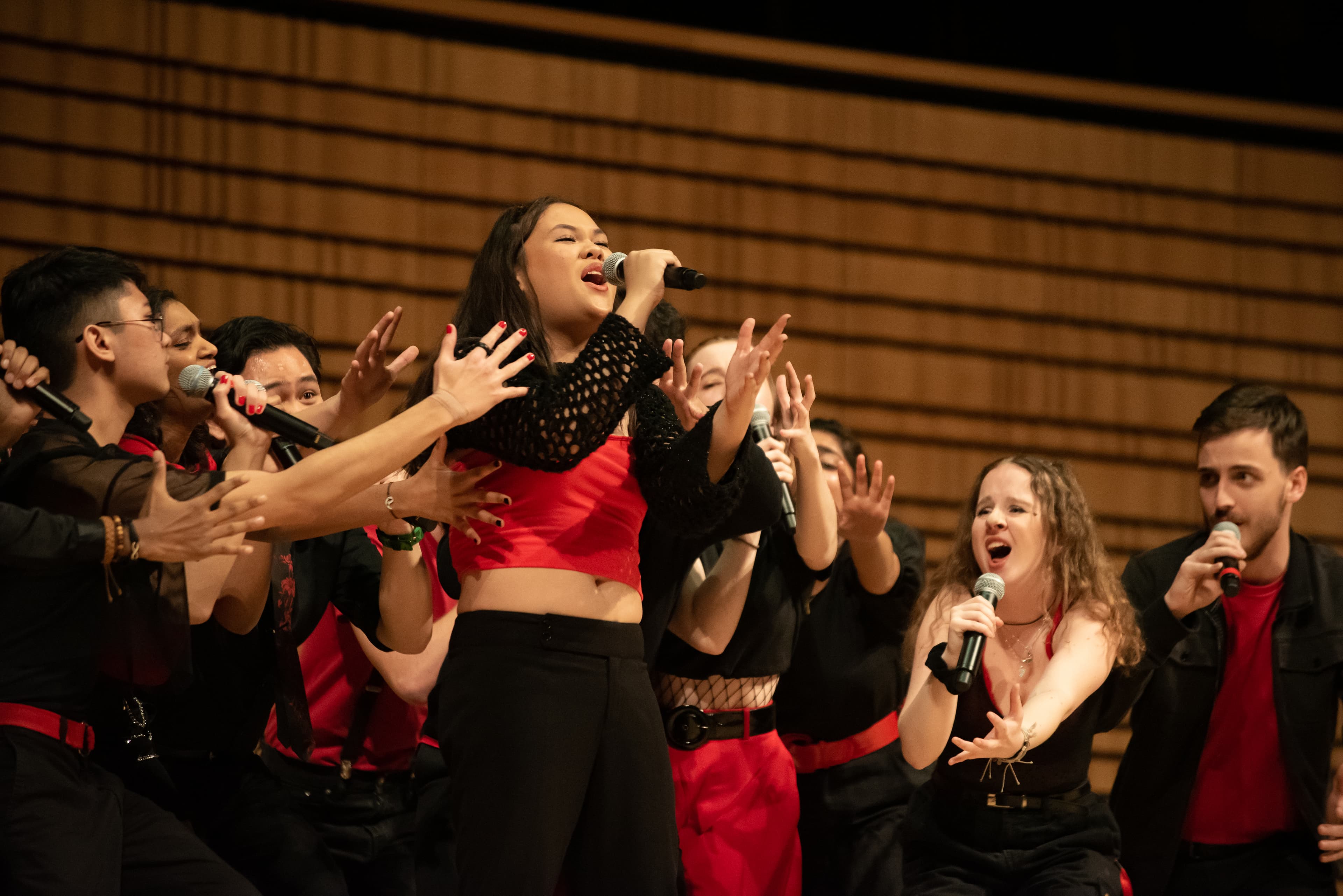 Last Saturday night, Features Editor Anna Zuniga ’26 and I happened upon the Varsity Vocals International Championship of Collegiate A Cappella in the Main Concert Hall at EMPAC. As the show began, Nicole Kholweiss, ICCA’s Central Day-Of Producer, entered the stage, introducing the competition, five judges, and the MC for the night, Katherine Scoullos ’23 from the Rensselyrics.