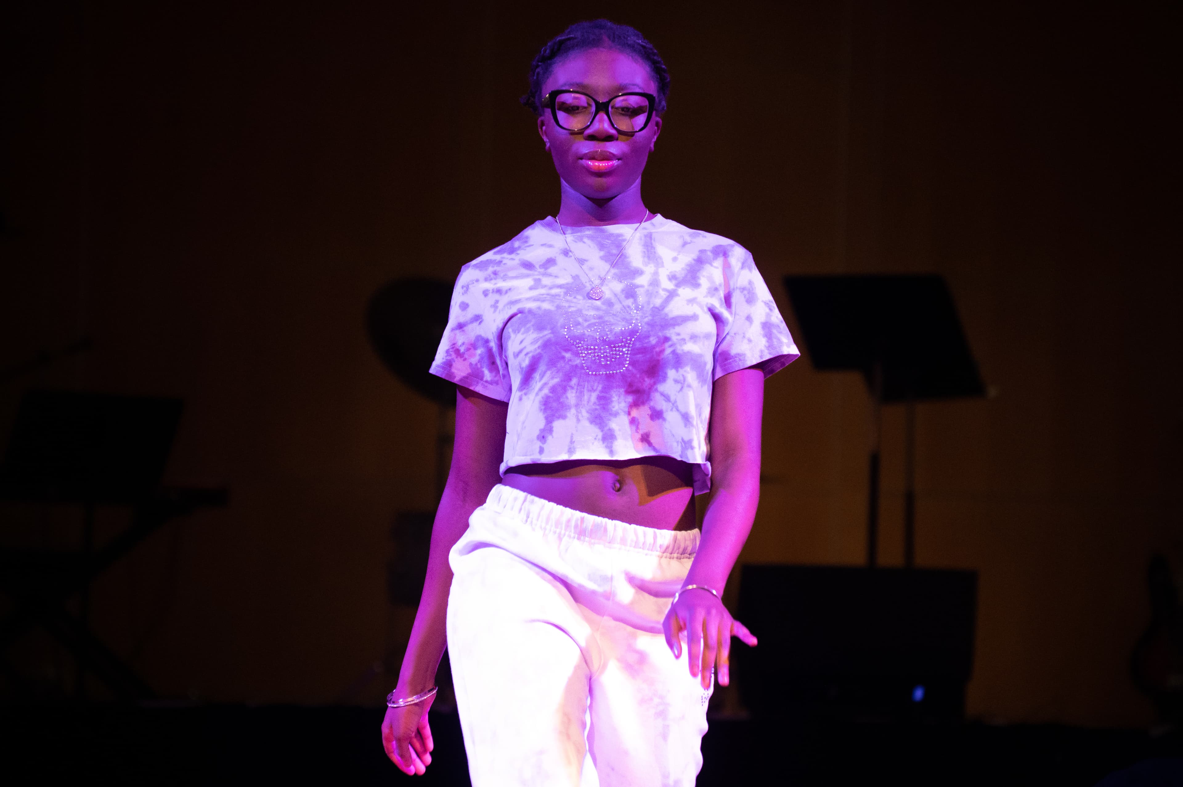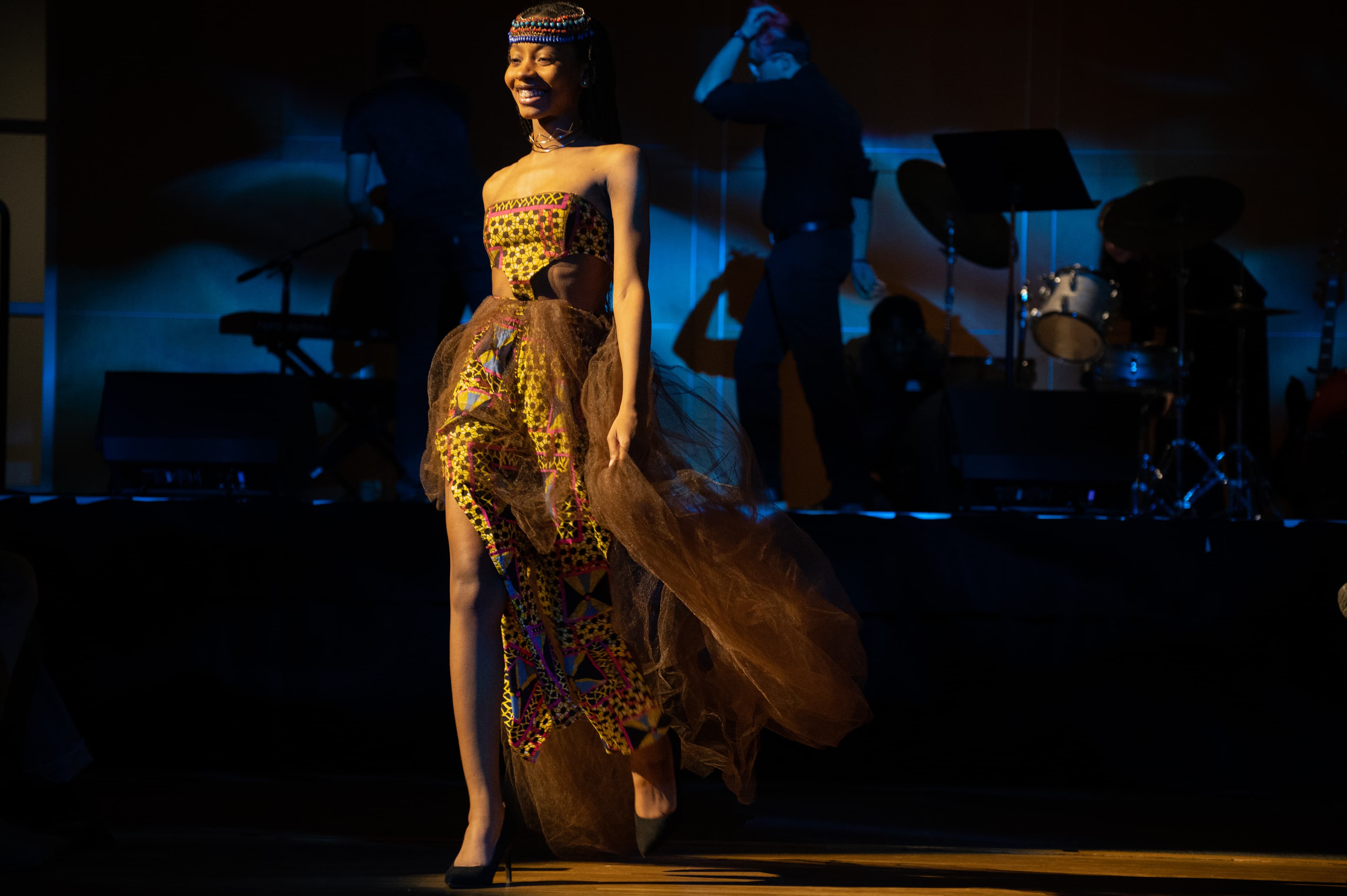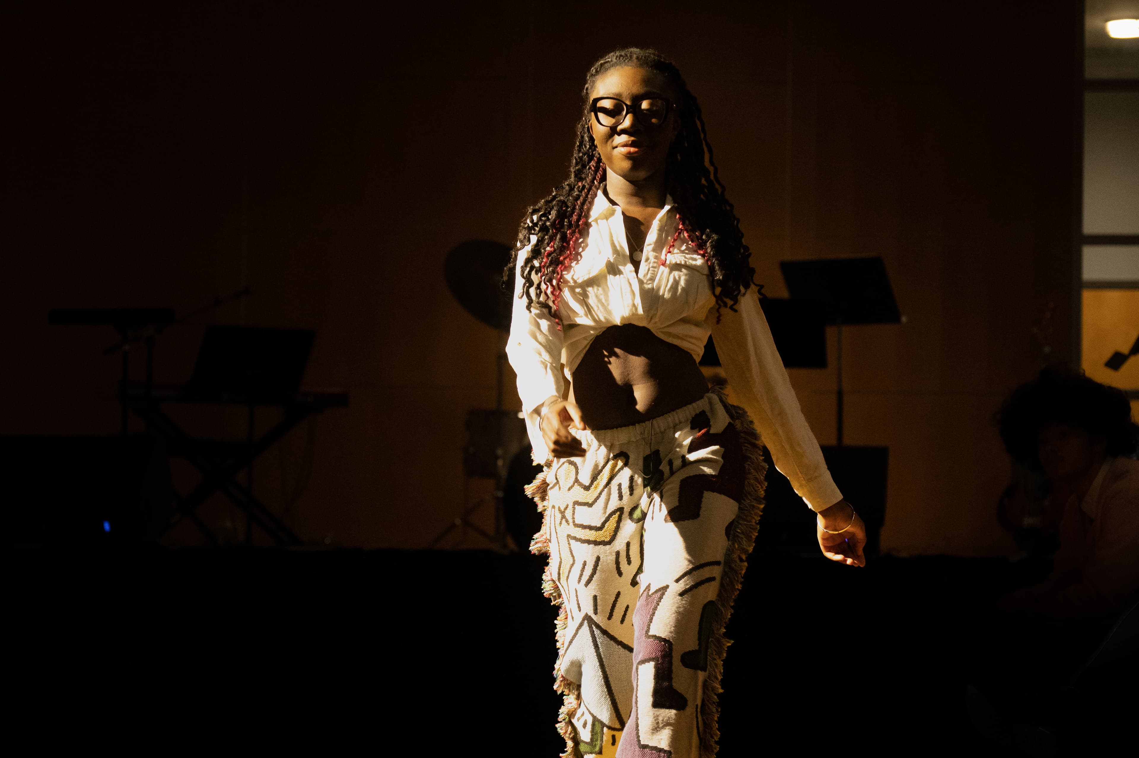 The first performance of the show did not feature fashion. Performing with a keyboardist and drummer, performers Reuben Abu ’25 and Chidera Amadife ’26 played a few lyrical songs which quickly transitioned into an energetic pop song through a bass drop. The wonderful soloists showed immense talent and rhythm as they sang, even getting the audience to clap along to the song.