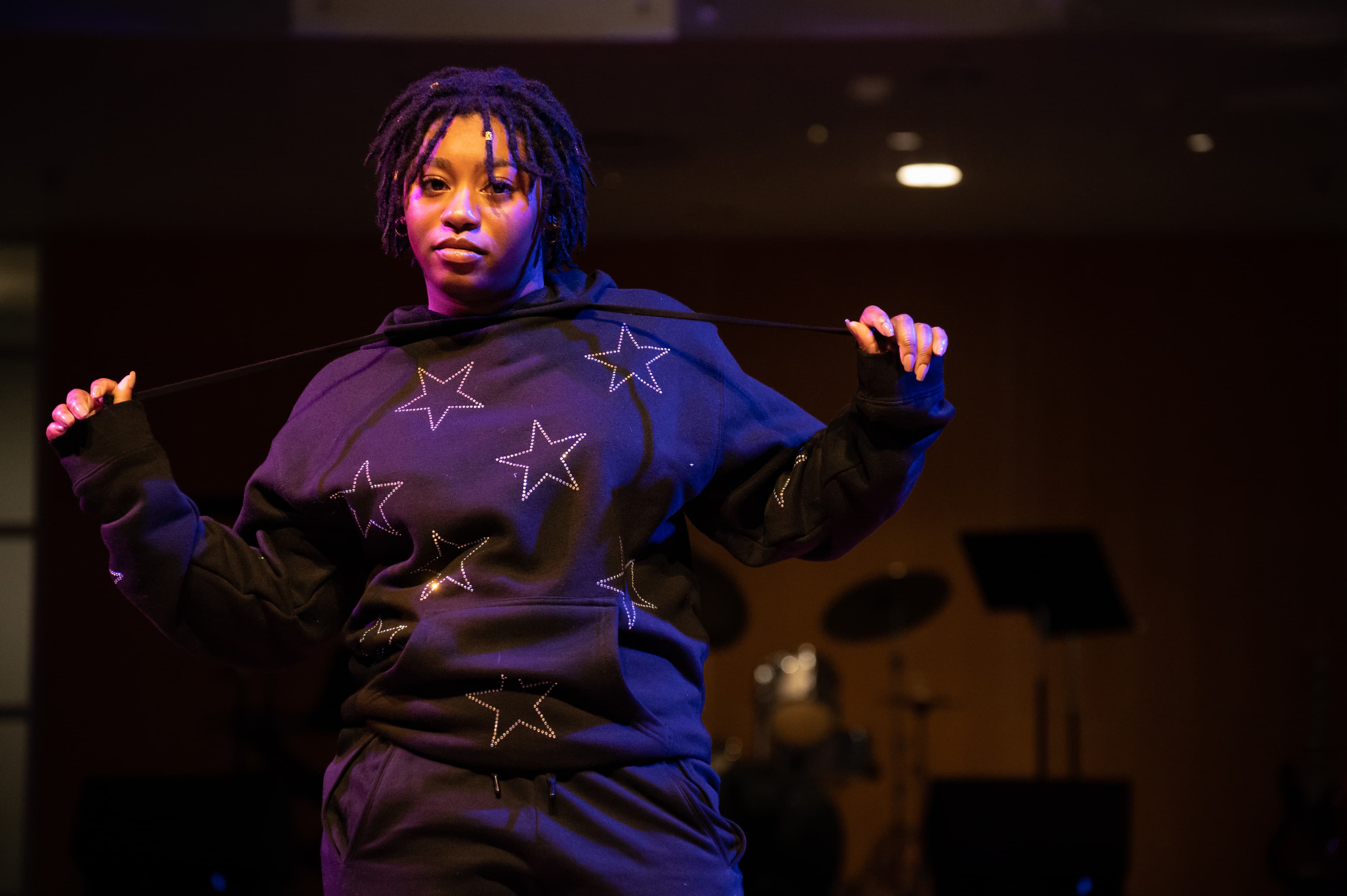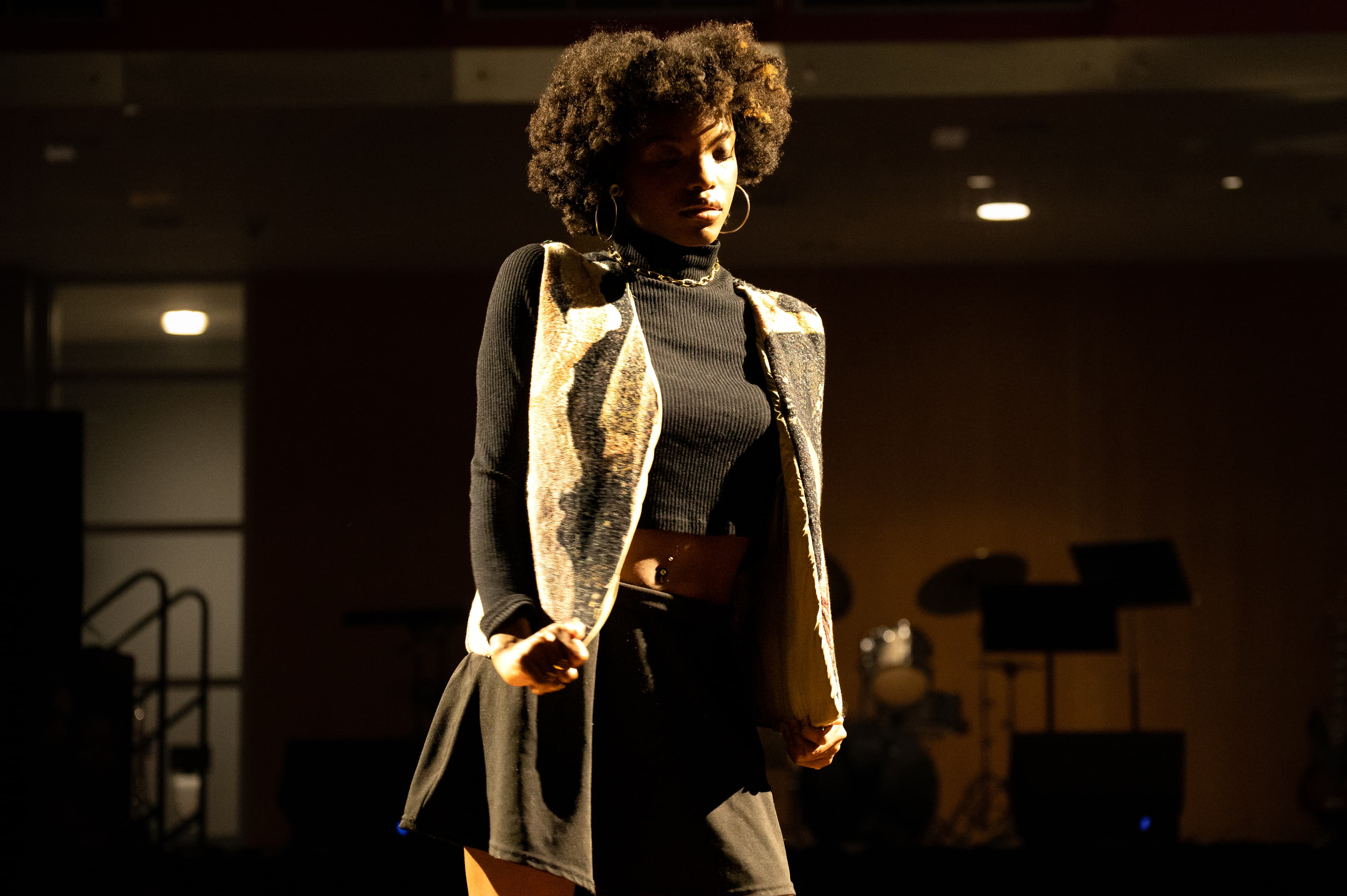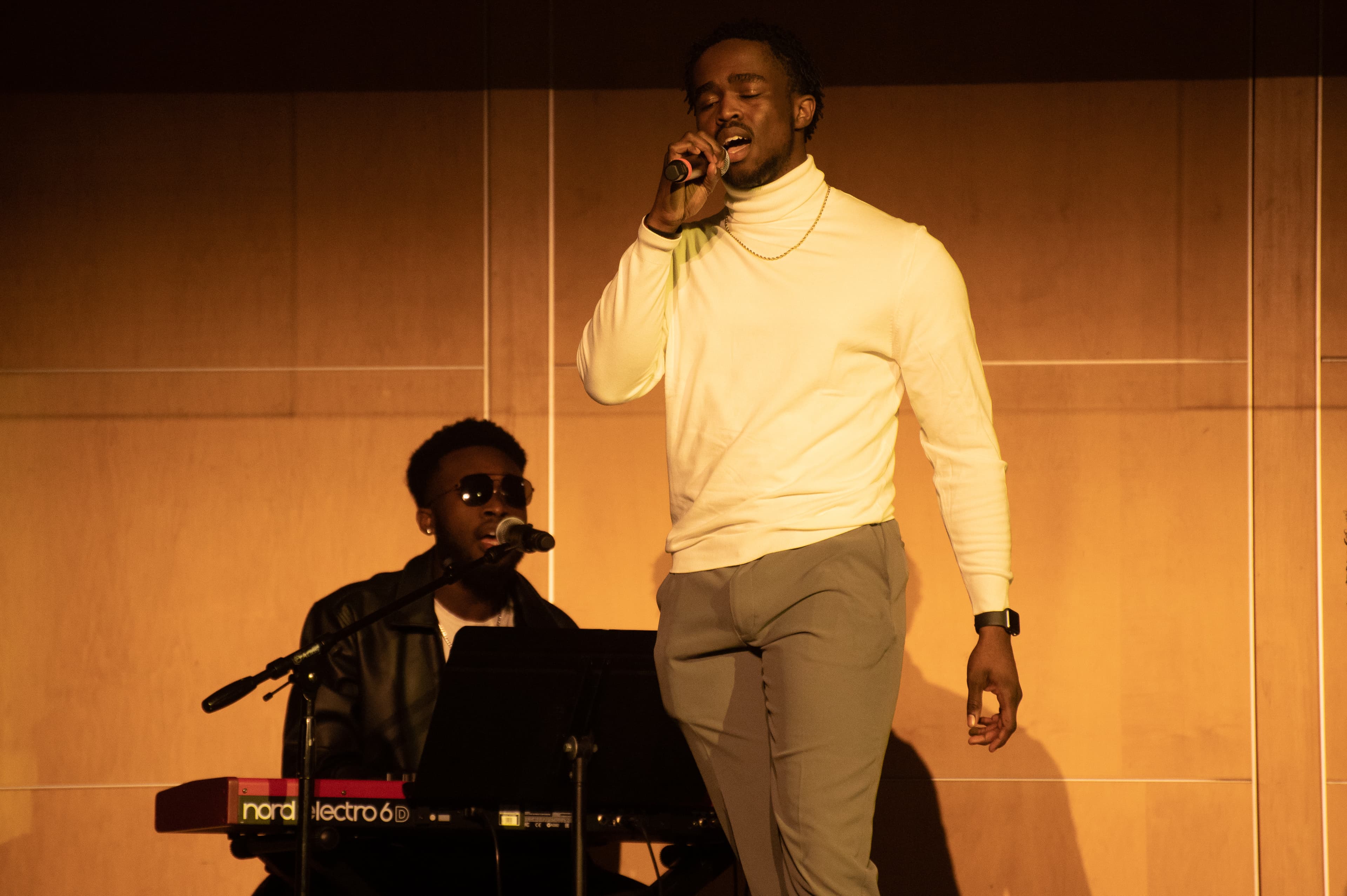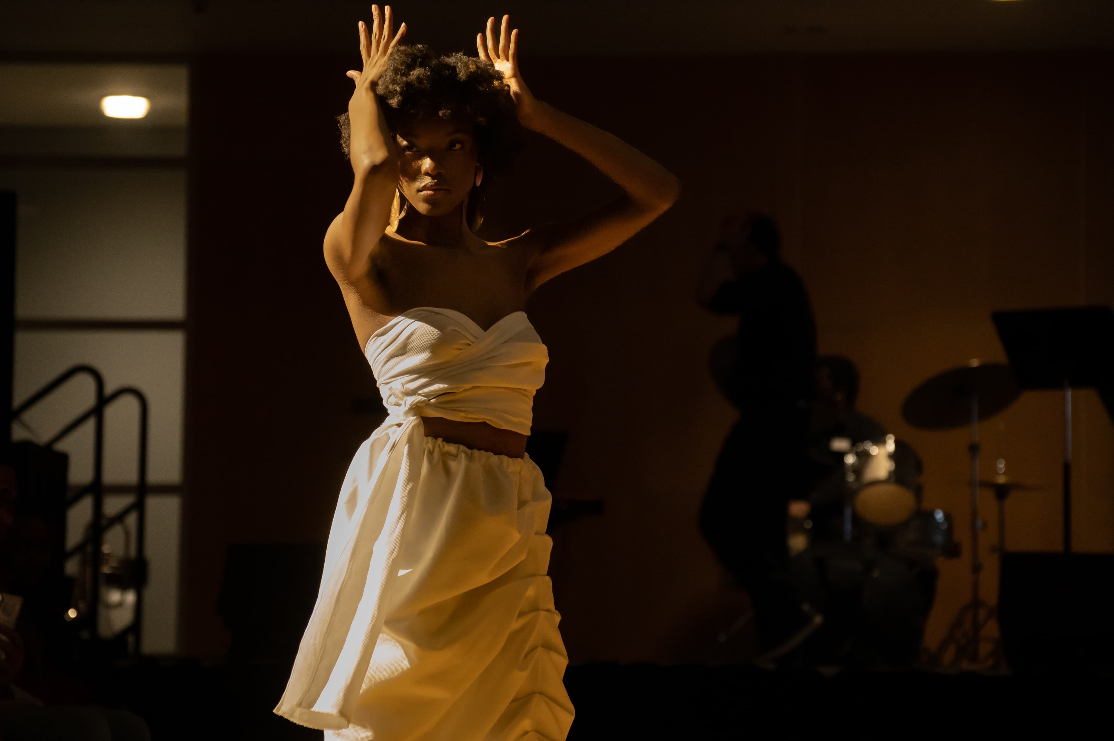 The first performance of the show did not feature fashion. Performing with a keyboardist and drummer, performers Reuben Abu ’25 and Chidera Amadife ’26 played a few lyrical songs which quickly transitioned into an energetic pop song through a bass drop. The wonderful soloists showed immense talent and rhythm as they sang, even getting the audience to clap along to the song.