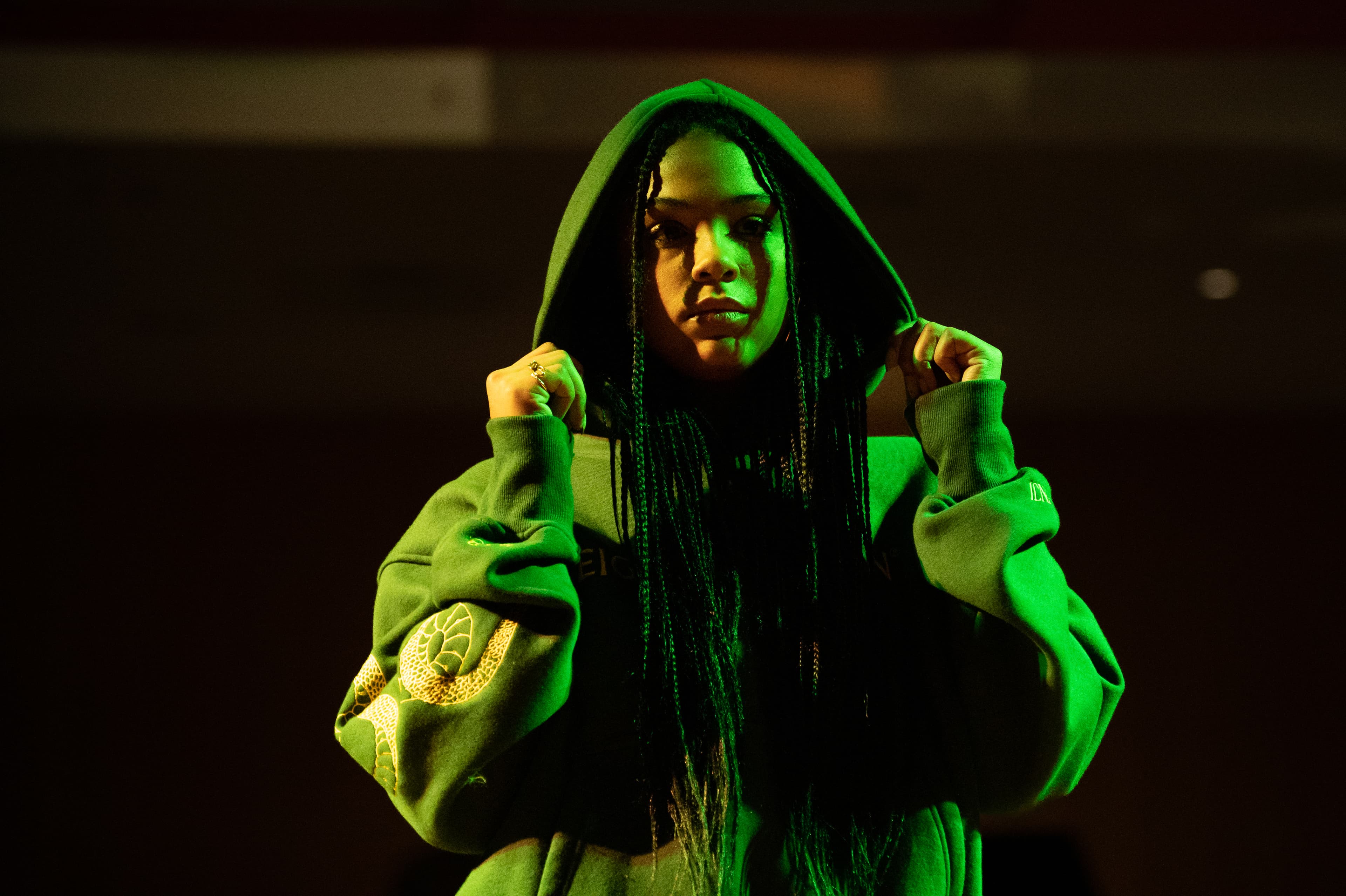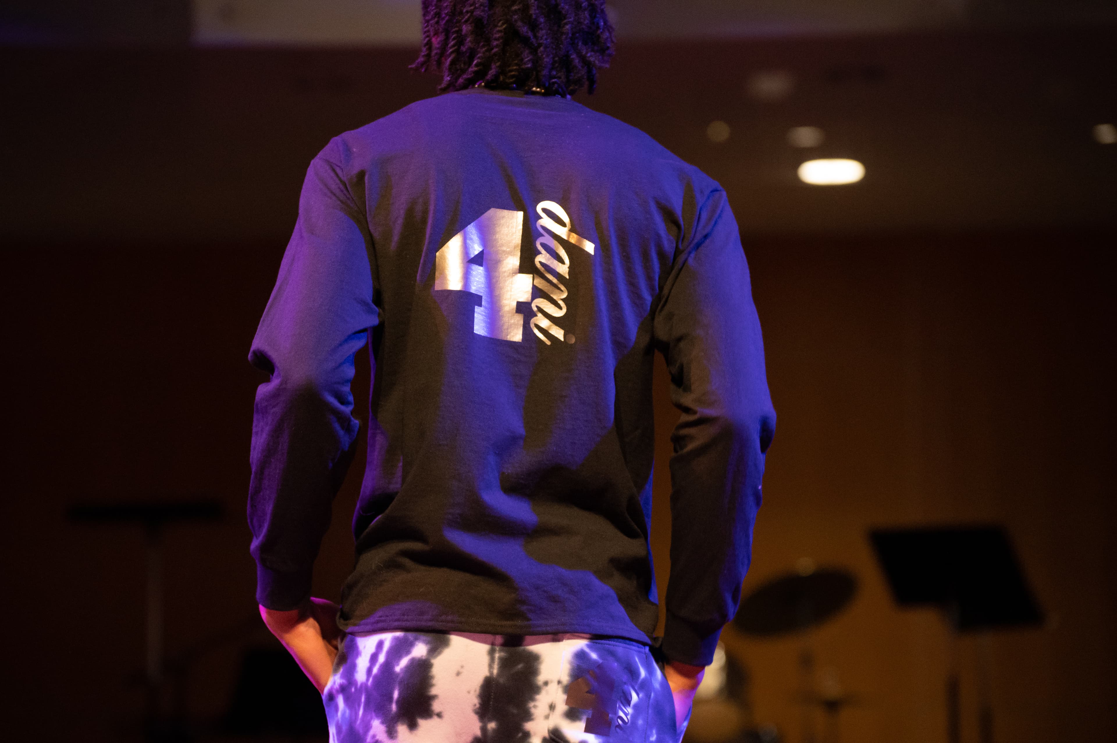 The next designer was 4 Dani. One design was given by a mother who dedicated the set to her daughter who unfortunately passed, but many of the other designs were created in quarantine. Including a selection of sweatpants and cropped hoodies, they set themselves apart by including tie-dye and gems on the attire, with their logo proudly displayed on the back of most of the garments.