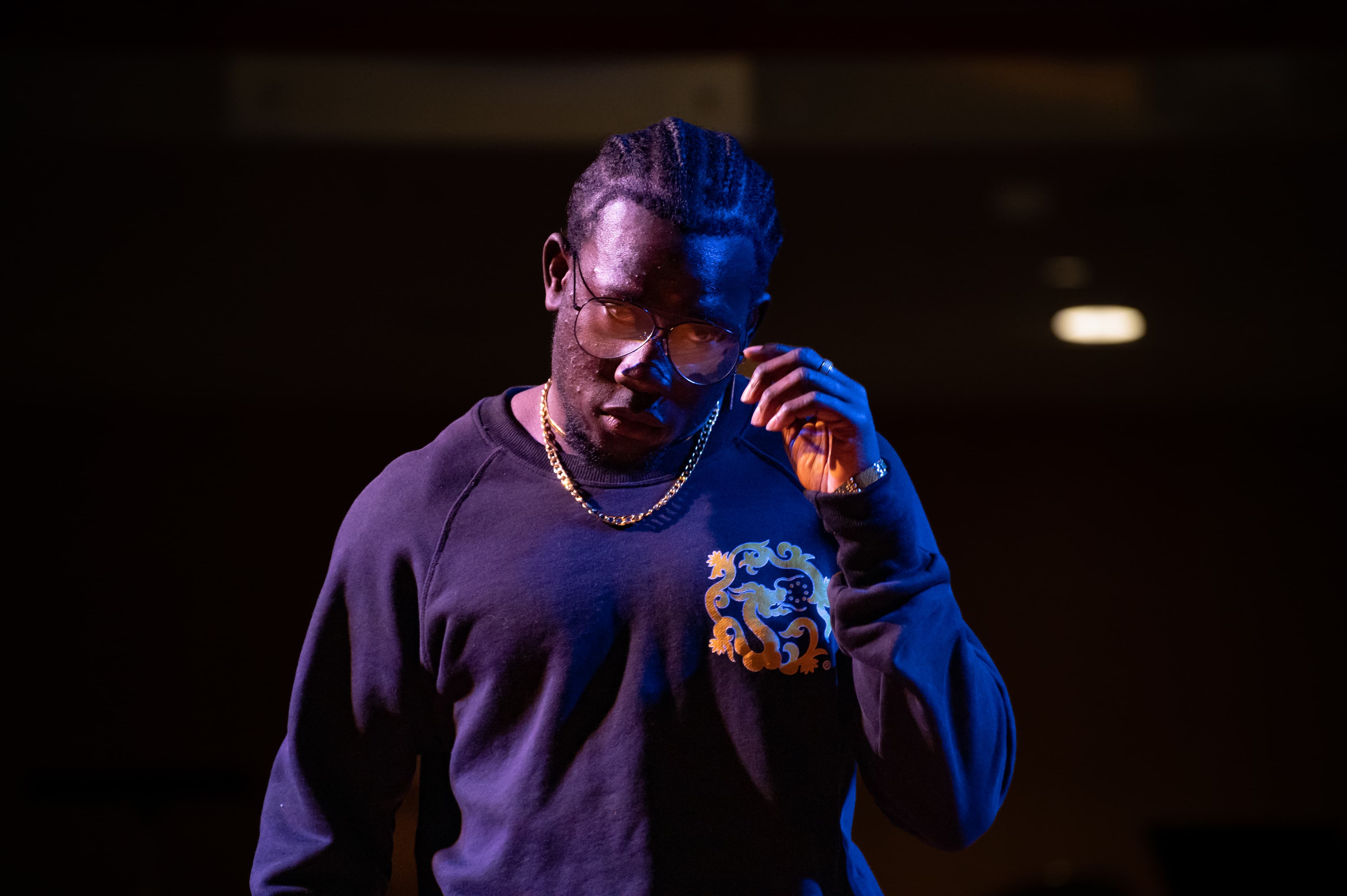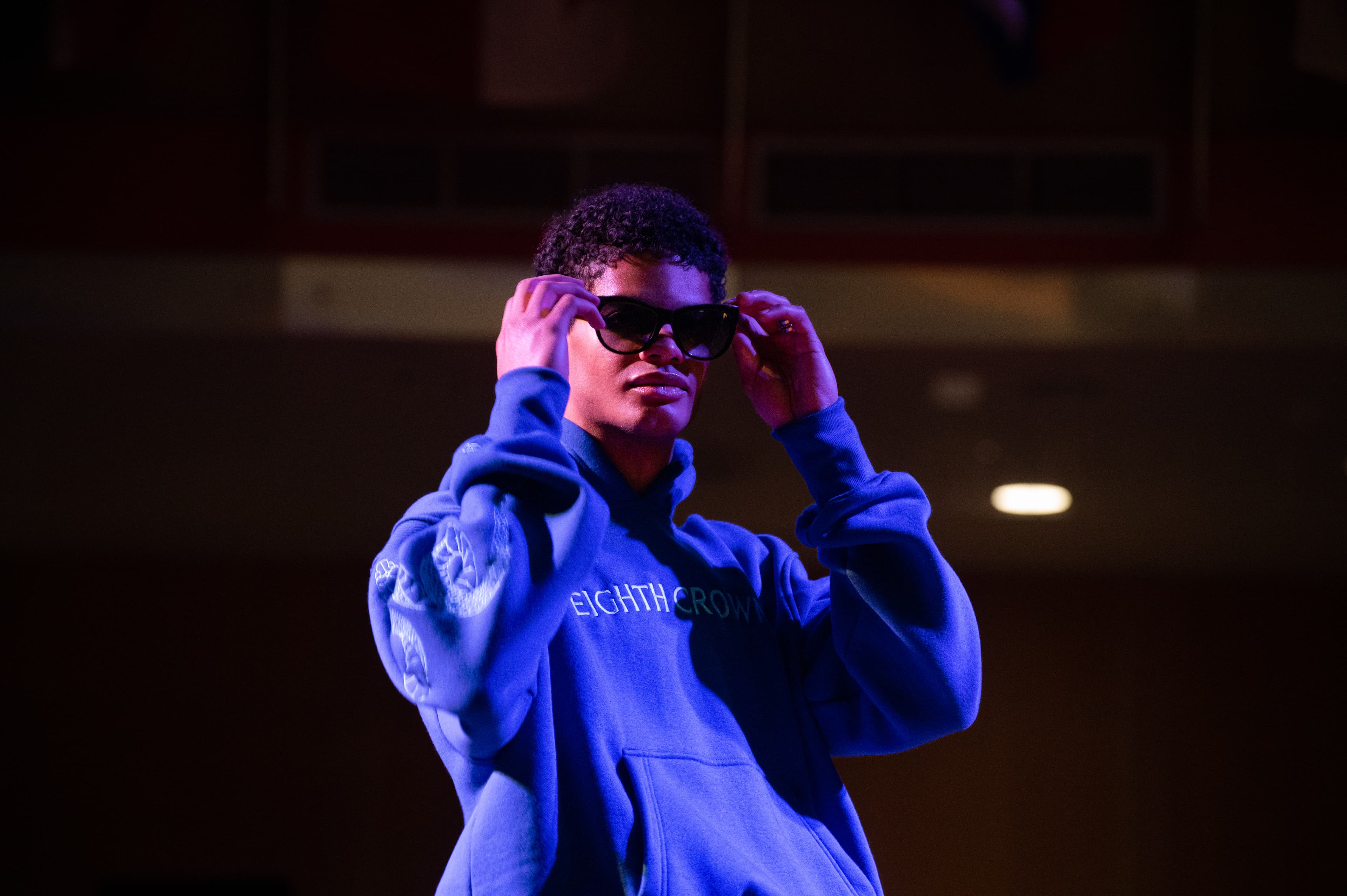 The third set of the night featured the designer of Eighth Crown, Mike Adetunji ’24, with a lot of sweatshirts and leisure wear. Many of the designs involved comfort and flexibility in their designs. Though most of the sweatshirt designs featured solid colors, they combined into one cohesive set.