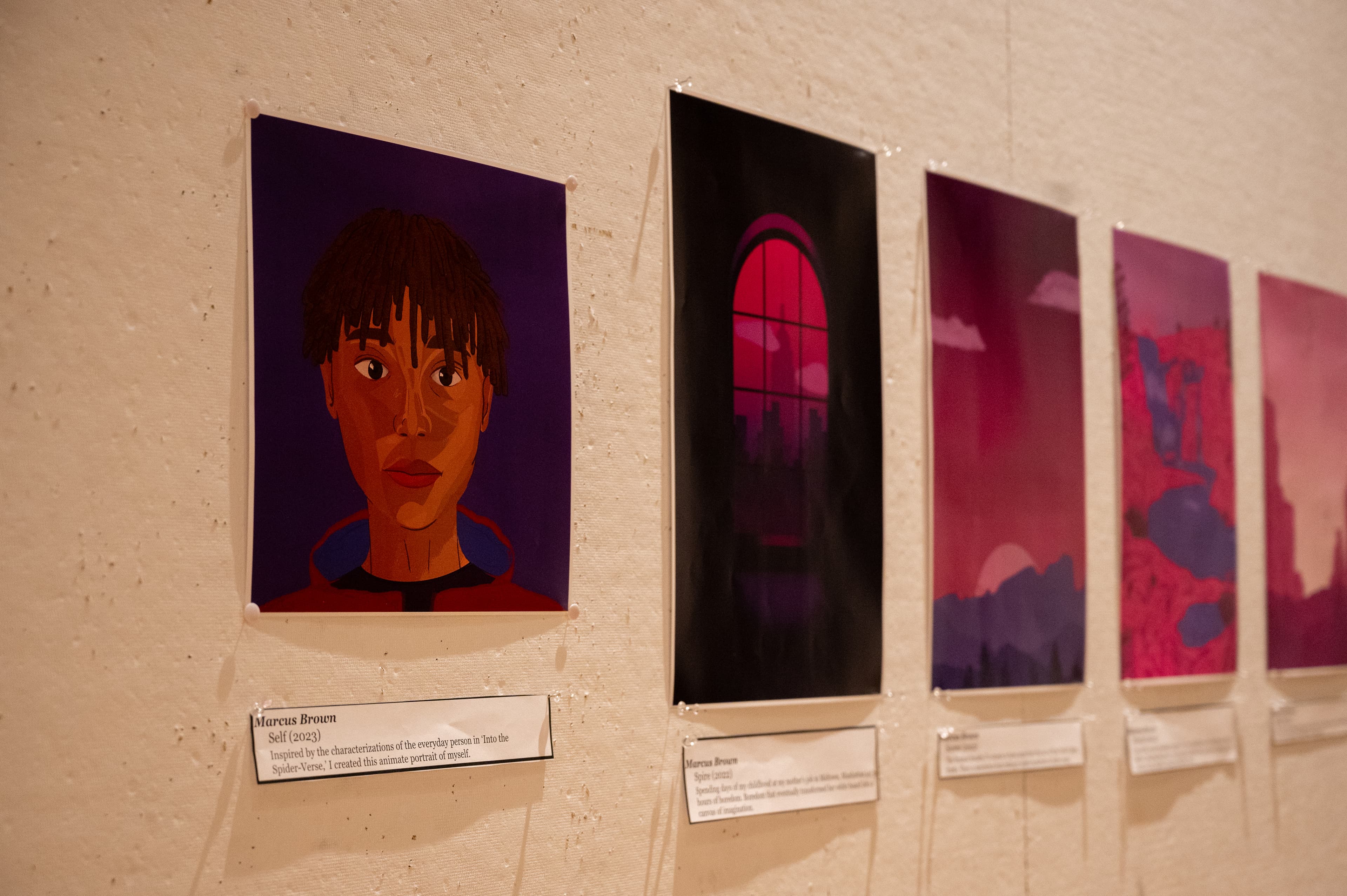 Marcus Brown ’26 from Yonkers, NY presented his collection of portraits, doodles, and graphic designs. He noted that this collection contains his more recent approach to landscapes.