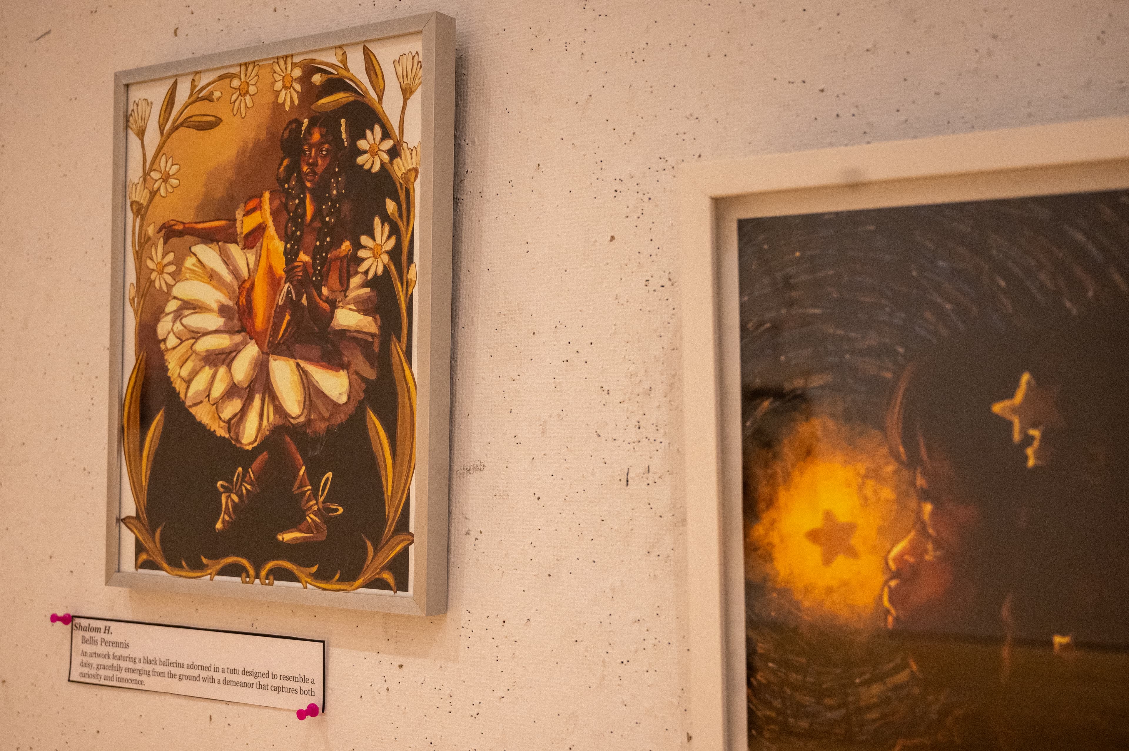 The Black Students’ Association hosted an art show on February 10th with students’ pieces in the Greene Gallery. All forms of art were displayed, from self-portraits to photographs and paintings of scenery. The artists were present and ready to answer questions, sharing the story behind the pieces and their art journey.