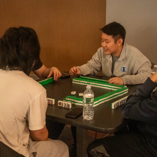 As you walked into the ballroom, you could see tables of students playing mahjong together. Mahjong is a tile-based game that originated in 19th-century China. It is typically played with four people and requires great strategizing in order to be the first to complete a winning hand via drawing and discarding tiles.