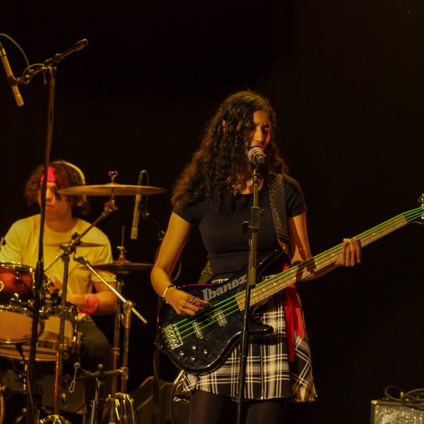 Another new band, Entropy, went on next. Multiple friends of the band’s members were in the crowd and put on a big display of support. They ran around the McNeil room holding cardboard signs with messages like “We love the bassist of Entropy.” They also lifted up some people in chairs during the later half of the set.