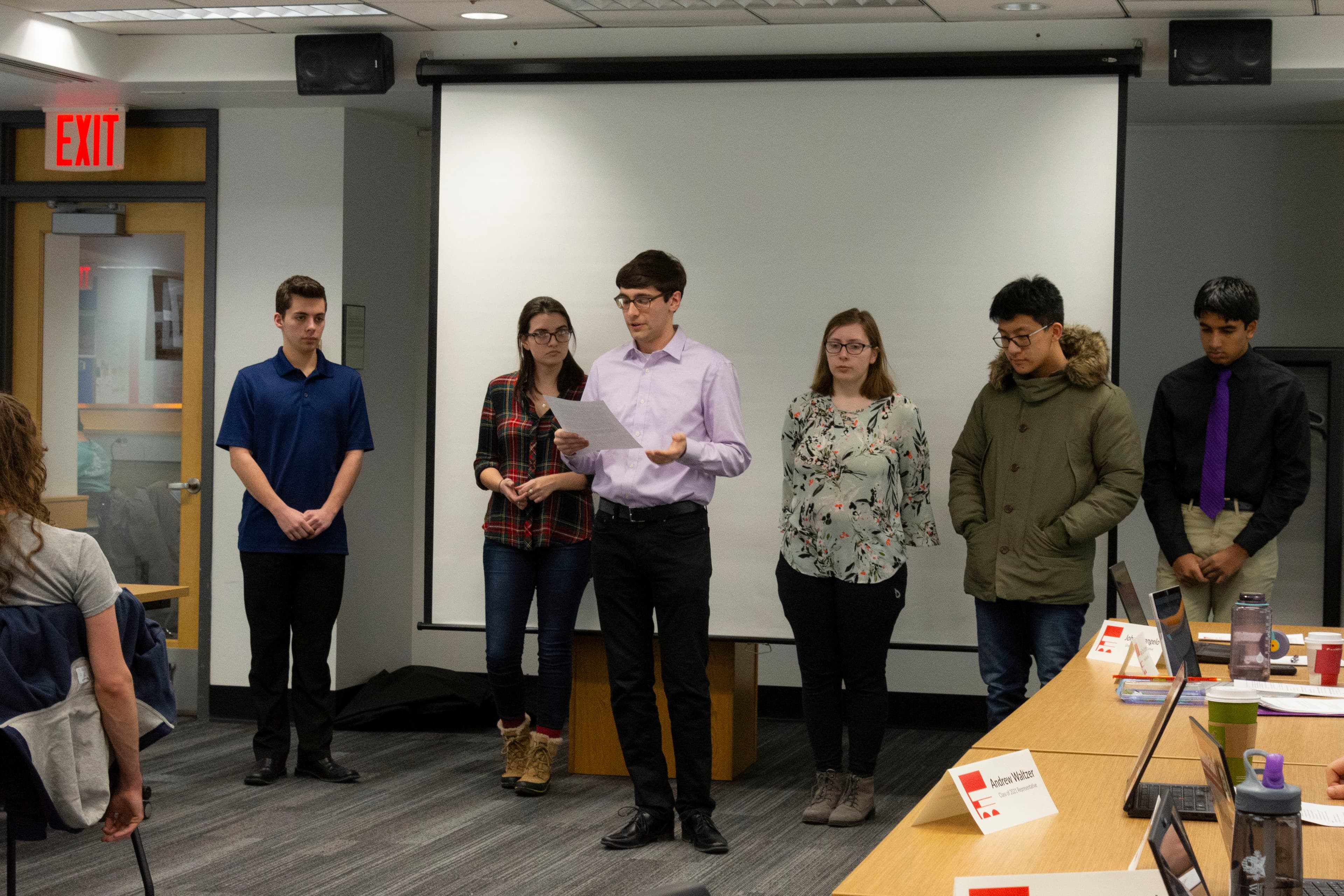 Kennedy found out she would be graduating a semester earlier than planned, leading to a motion to approve “the appointment of Caitlin Kennedy ’19 ’20 G to the position of Class of 2019 Representative” that passed 13-0-1. This was a reallocation in Board member positions—Kennedy from member-at-large representative to her current title—that opened up a voting position for Multicultural Leadership Council Chairperson Dragana Dragutinovic ’20. A motion to approve Dragutinovic to the position of member-at-large representative, upon Senate confirmation, passed unanimously.