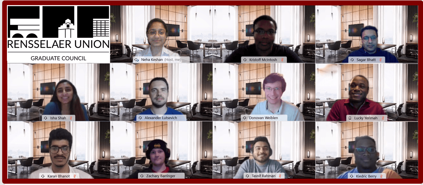 This year has been very challenging, and our work couldn’t have been possible without the help of our allies. We would like to thank every member of the graduate student community for keeping that continuous trust and faith in us, members of the administration—especially Dean Dunn and Dean Smith—faculty, staff, student leaders, and organization across campus who helped us represent the Graduate Student Community at Rensselaer better in this very unique and challenging year. As our term comes to a close, we hope our work had a positive impact on our peers.