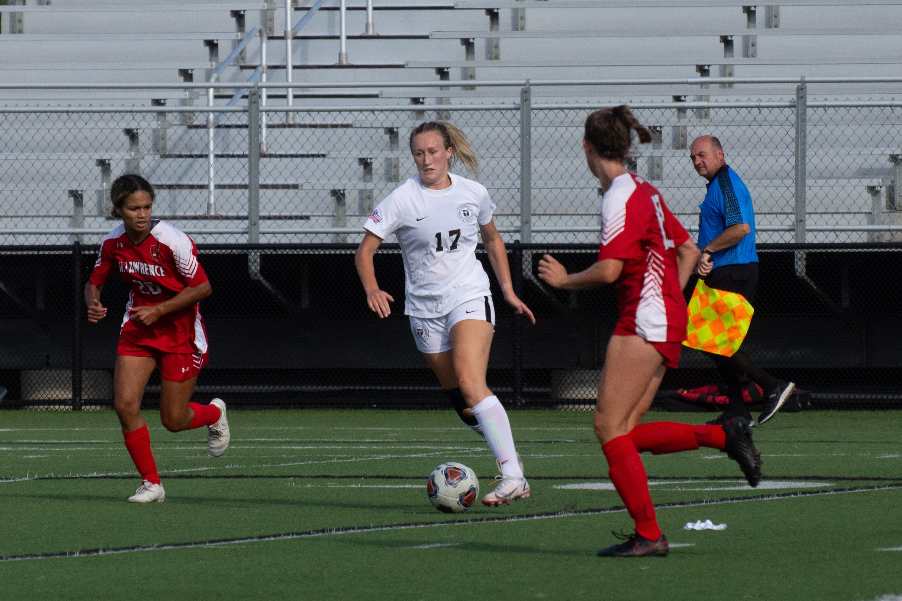 The Saints’ lack of offensive opportunities was mostly in part due to the solid midfield duo of Olivia Spector ’22 and Ali Bisaccia ’22. In the 44th minute, RPI’s Lea Michel ’25 dribbled past a couple St. Lawrence defenders, cut inside, and ripped a shot that went just wide of the right post. The half ended 1‒0 after the early Saints’ goal.