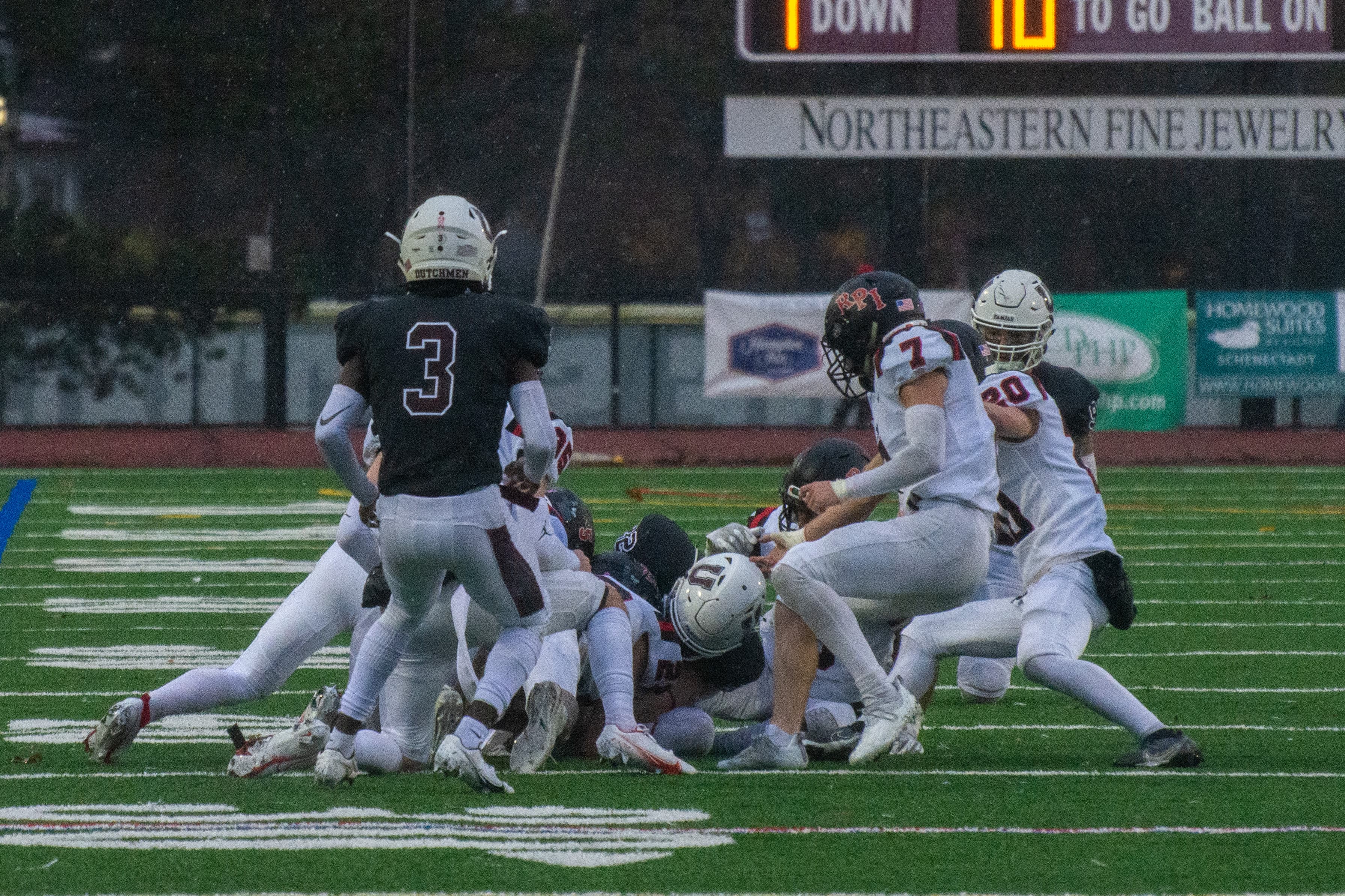 It was a stormy day in Schenectady as the Engineers and Dutchmen battled it out on the gridiron at Frank Bailey Field; the weather didn’t keep fans from filling up the stands and wrapping around the stadium fence.