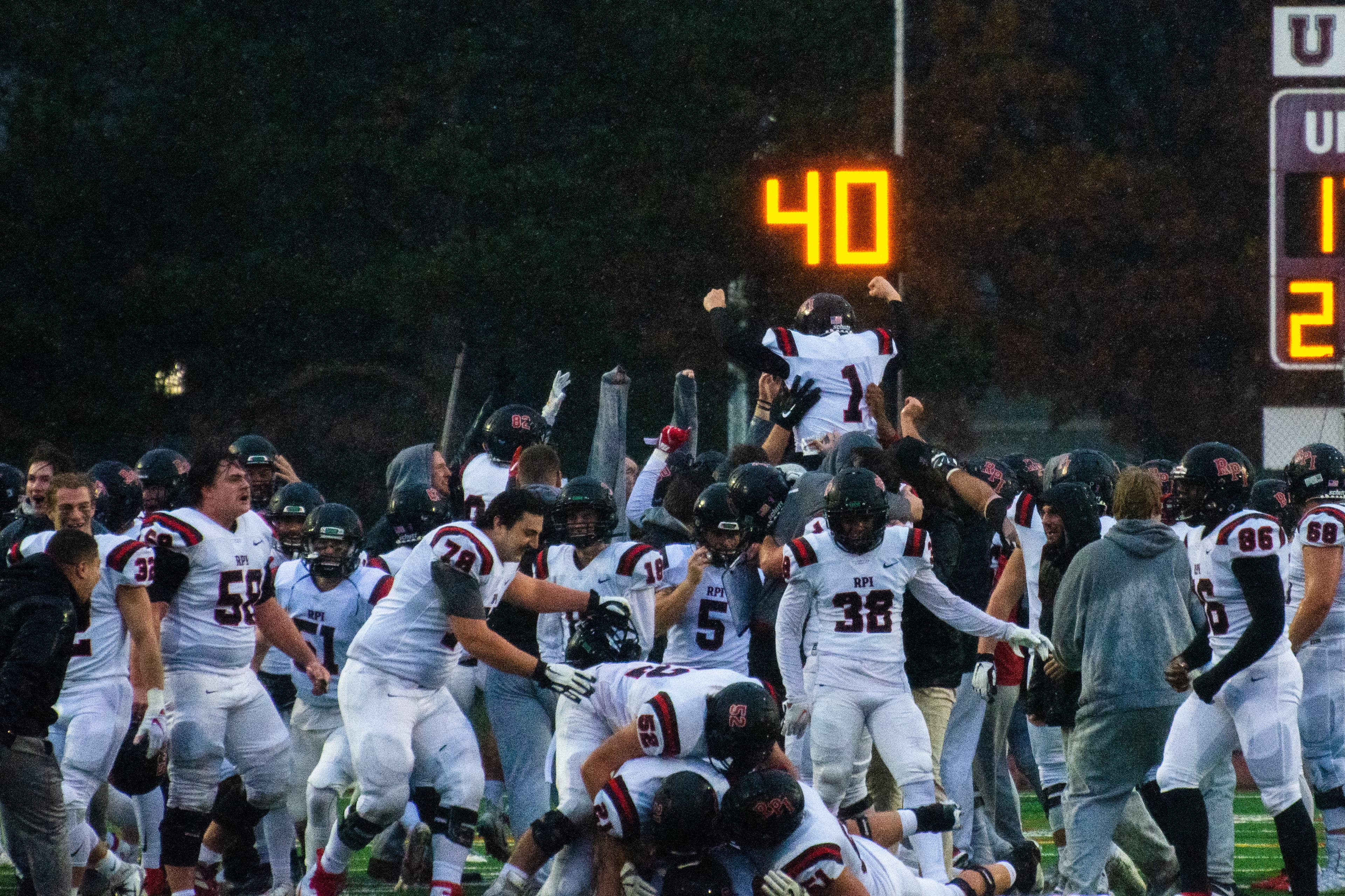 In an unlikely finish, the Engineers scored nine points in the final minute to win 19‒17. Not only had they won the Dutchman Shoes trophy, but the Liberty League title as well. The Engineers advance to the first round of the NCAA tournament, their first opponents being the Endicott College Gulls.