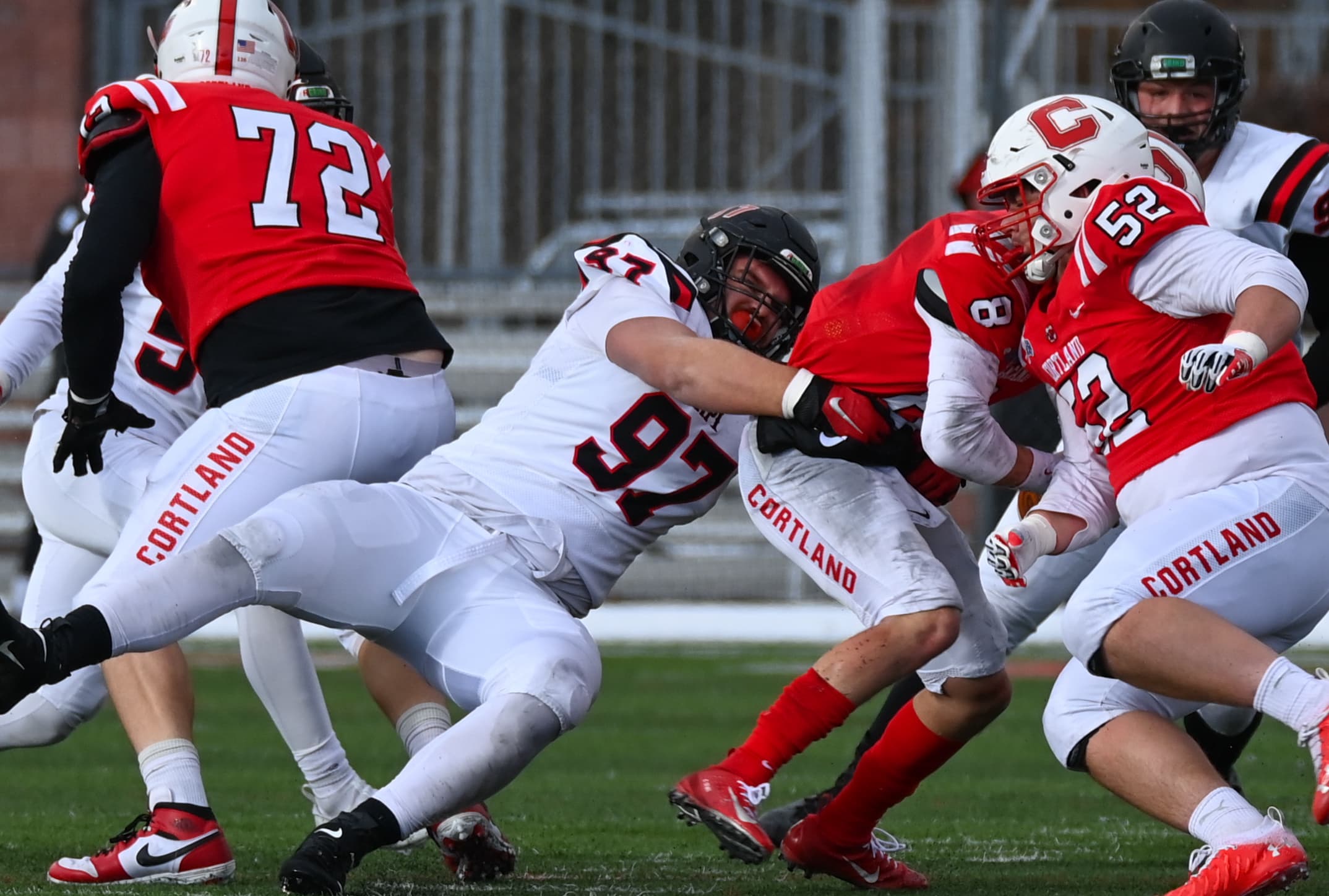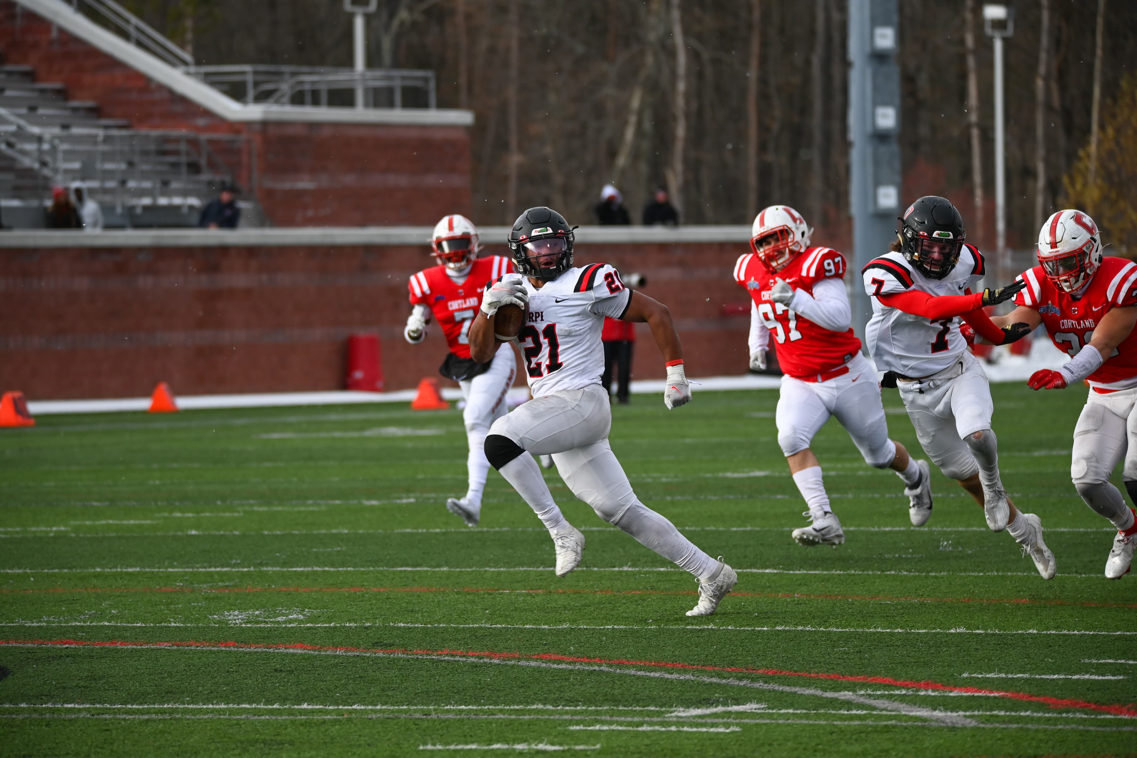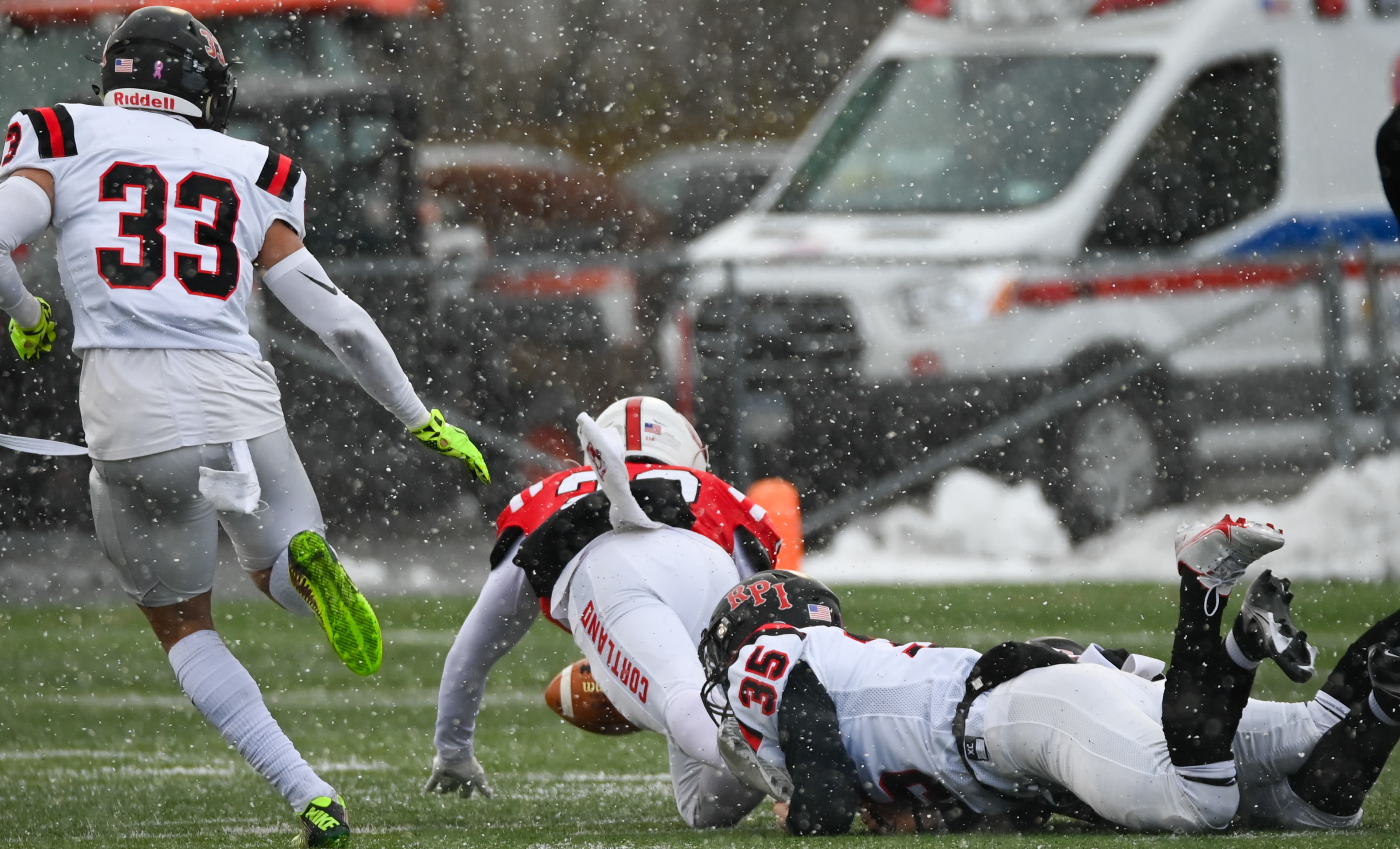Rensselaer traveled west to Cortland for their second-round matchup against the Red Dragons. The freezing weather and snowfall were less-than-optimal conditions for a playoff football game.