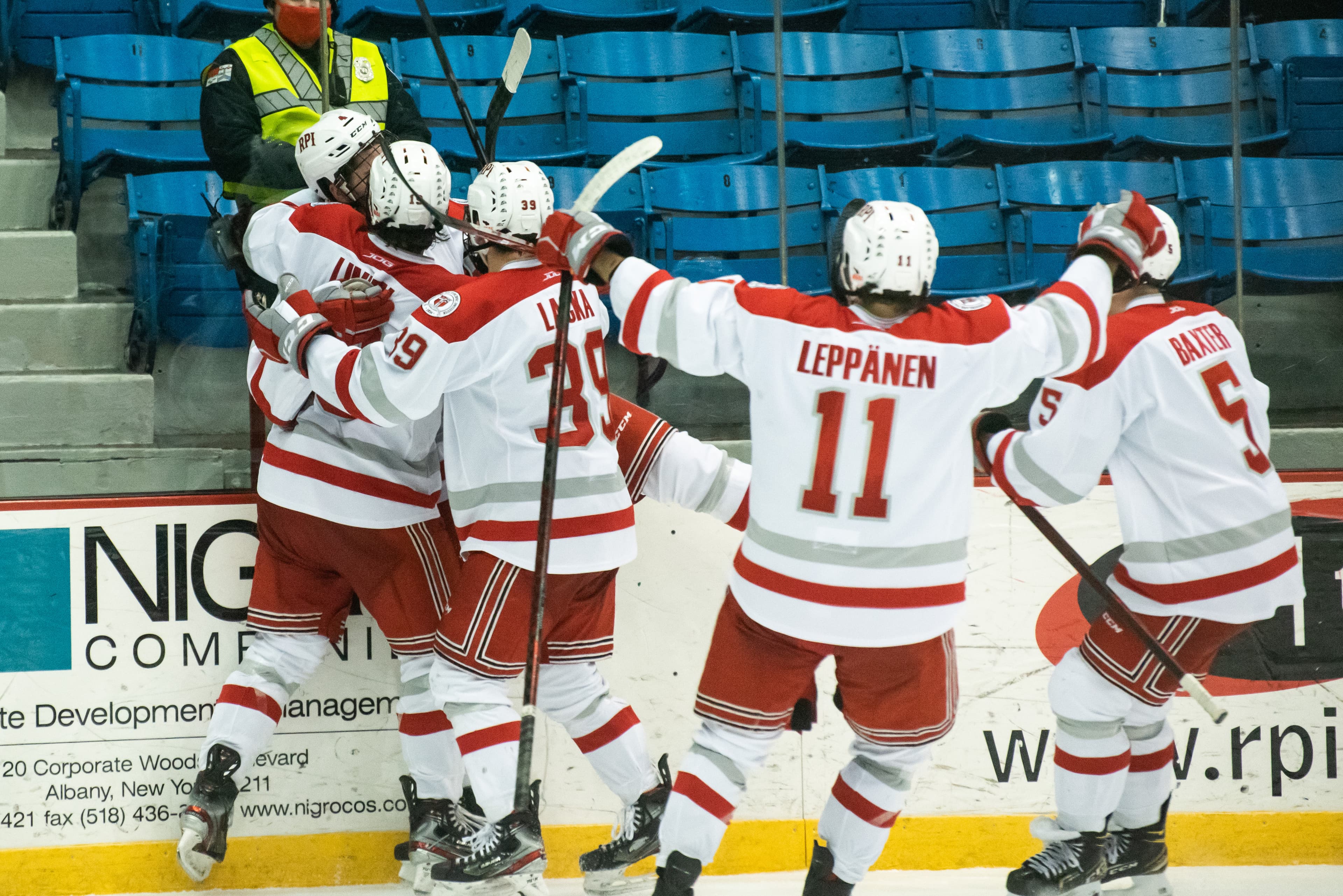RPI controlled the flow of the game in the second period. They would score ten minutes into the period on a power play. From the left faceoff circle, Ture Linden ’22 sent a tight pass through the center of the four penalty killers to Ottoville Leppänen ’22. Leppänen used his spectacular vision to pick out Lacka cross-crease. Stevenson could not react in time and Lacka buried his seventh goal of the season to put the Engineers up by two.