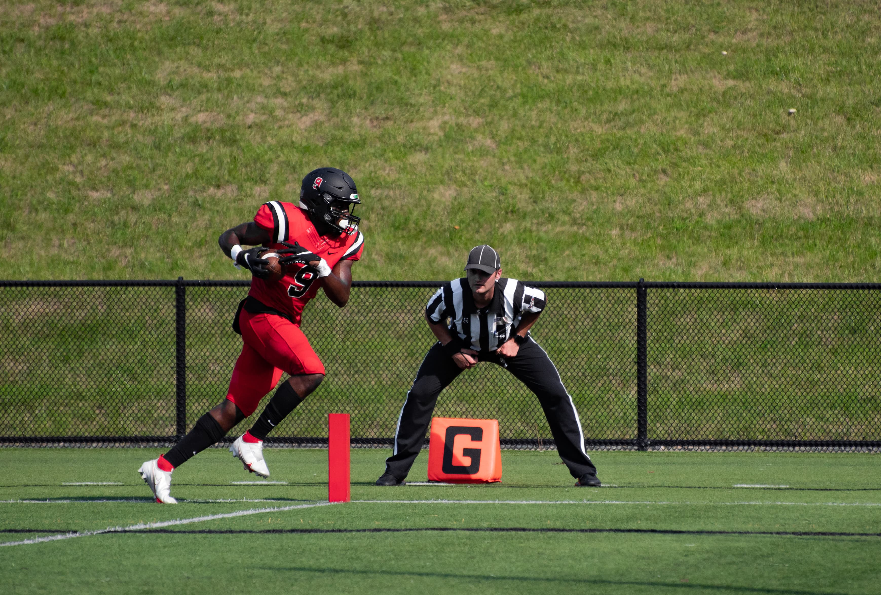 Backup quarterback Jake Kazanowsky, who had come in for a short spell earlier in the game, replaced Petercuskie for the last three minutes. Thanks to illegal substitution and unsportsmanlike conduct penalties on the Tartans, the Engineers quickly advanced upfield while preserving as much of the clock as possible. On first and 10 at the Carnegie Mellon 23, receiver Deen Ninche drew out a defensive back by faking a curl route. After Ninche had cleared space behind the Tartan secondary, Kazanowsky lobbed a throw to the open receiver as he was getting ripped to the turf. Ninche made the nonchalant catch for a touchdown, cutting the lead down to just one score with less than two minutes remaining.