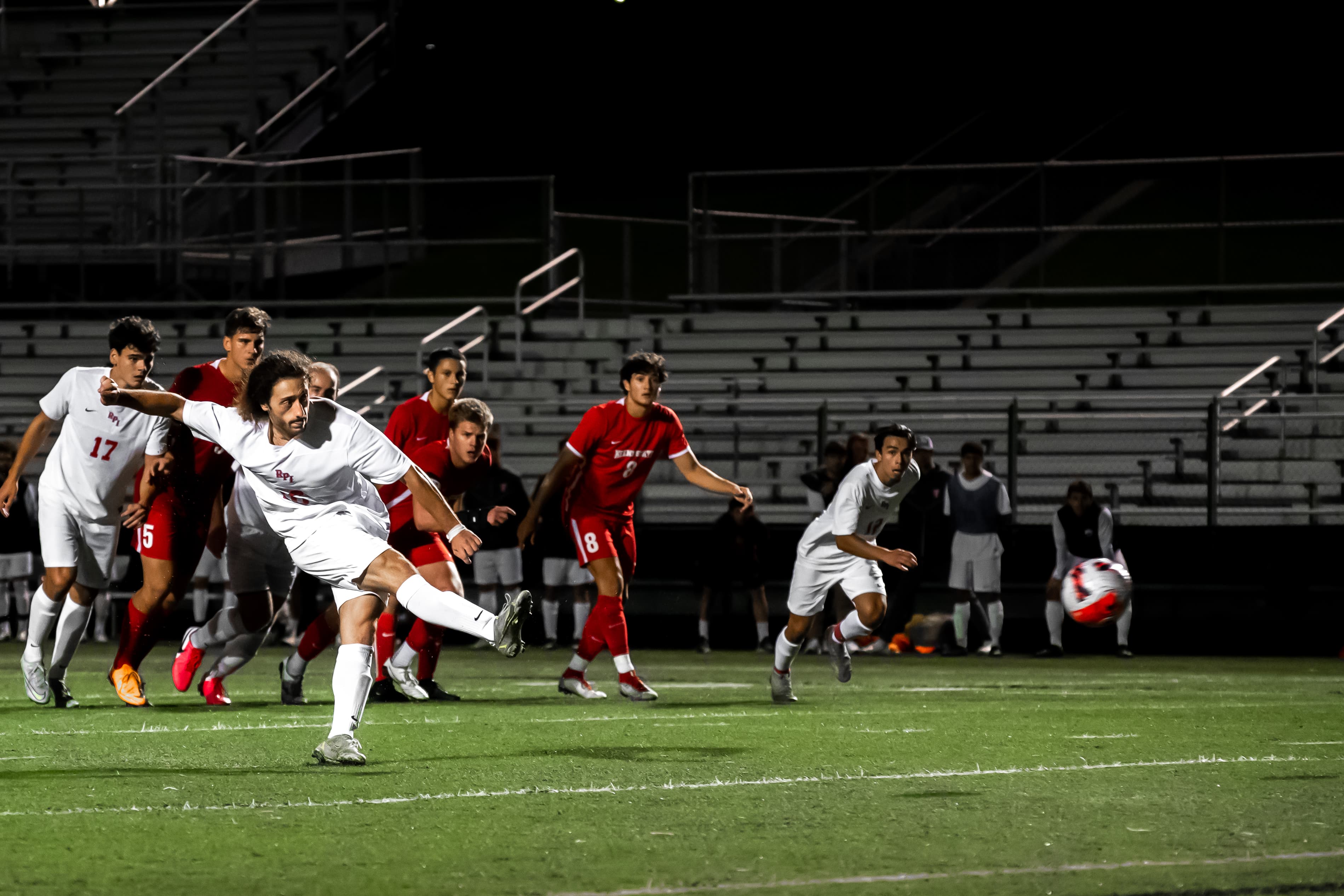 The Engineers opened the scoring less than eight minutes into the match. Rensselaer’s Thomas Corcoran whipped an in-swinging cross into the box, which was headed towards the Keene goal by a defender. A misplay, Owl defender Damir Hamzic left the ball to be collected by his goalkeeper. Silva pounced on the ball, took an initial shot off of the keeper, and tucked home the rebound to put RPI in front 1‒0.