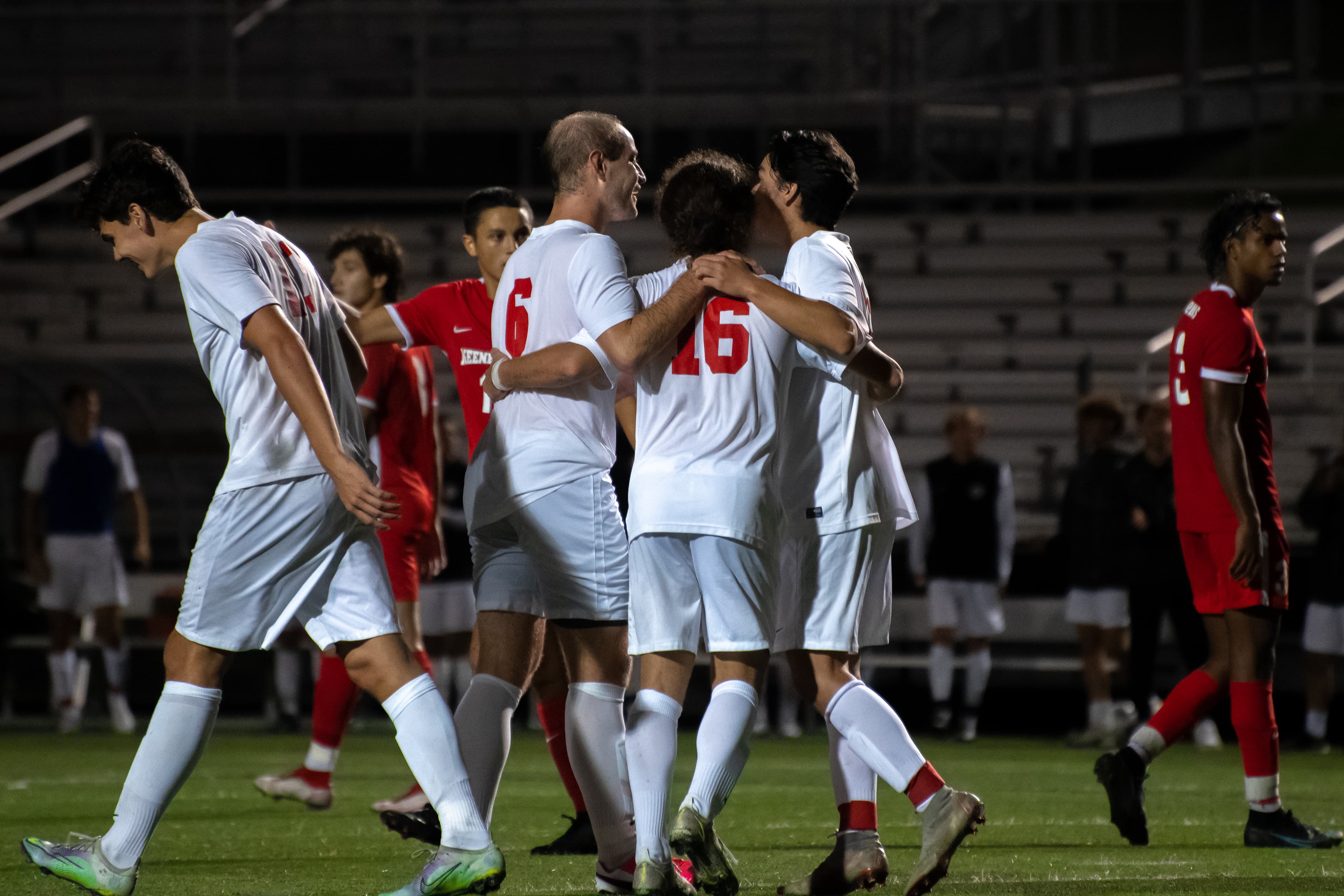 Keene State would make two goal-line clearances to keep the lead at just one goal before equalizing. Twenty-five minutes into the second half, a Keene State free kick was headed backward by an Engineer. The ball crashed against the arm of defender Alex Garciá—who did not have enough time to react—in the penalty area; the referee sounded his whistle and pointed to the spot.
