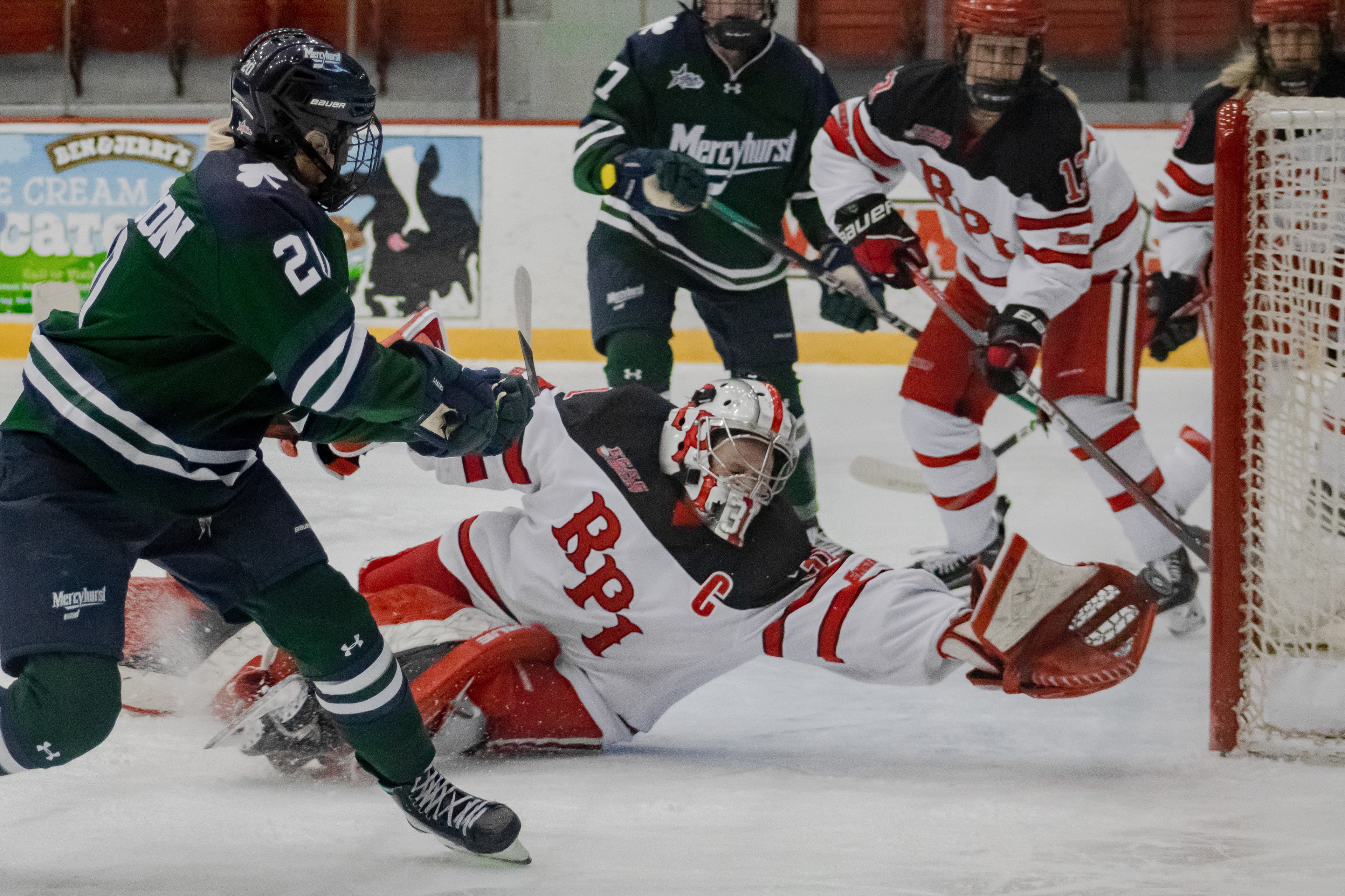 The first game of the weekend was scoreless heading into the third period. Laker Sara Boucher netted a power play goal to put Mercyhurst in the lead less than six minutes into the frame. A late empty-net goal sealed a 2‒0 victory for the visitors despite Rampado’s 31-save performance.
