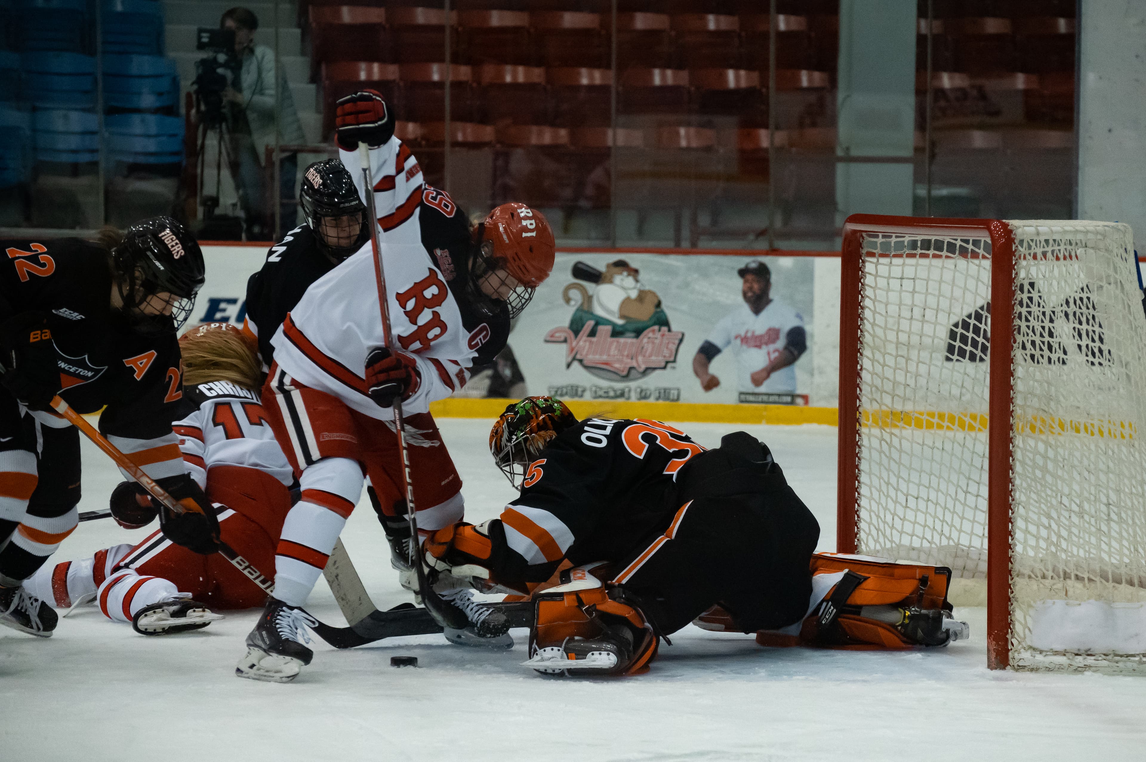 The Tigers continued to dominate the first period, but RPI clawed their way back into the game. Engineer Sabrina Beaudoin won the puck in the Princeton zone and passed it back to Hannah Price at the point. Tigers closed in as Price sniped the puck over the shoulder of goaltender Jennifer Olnowich, tying the game at 1‒1 with three seconds remaining in the opening period.