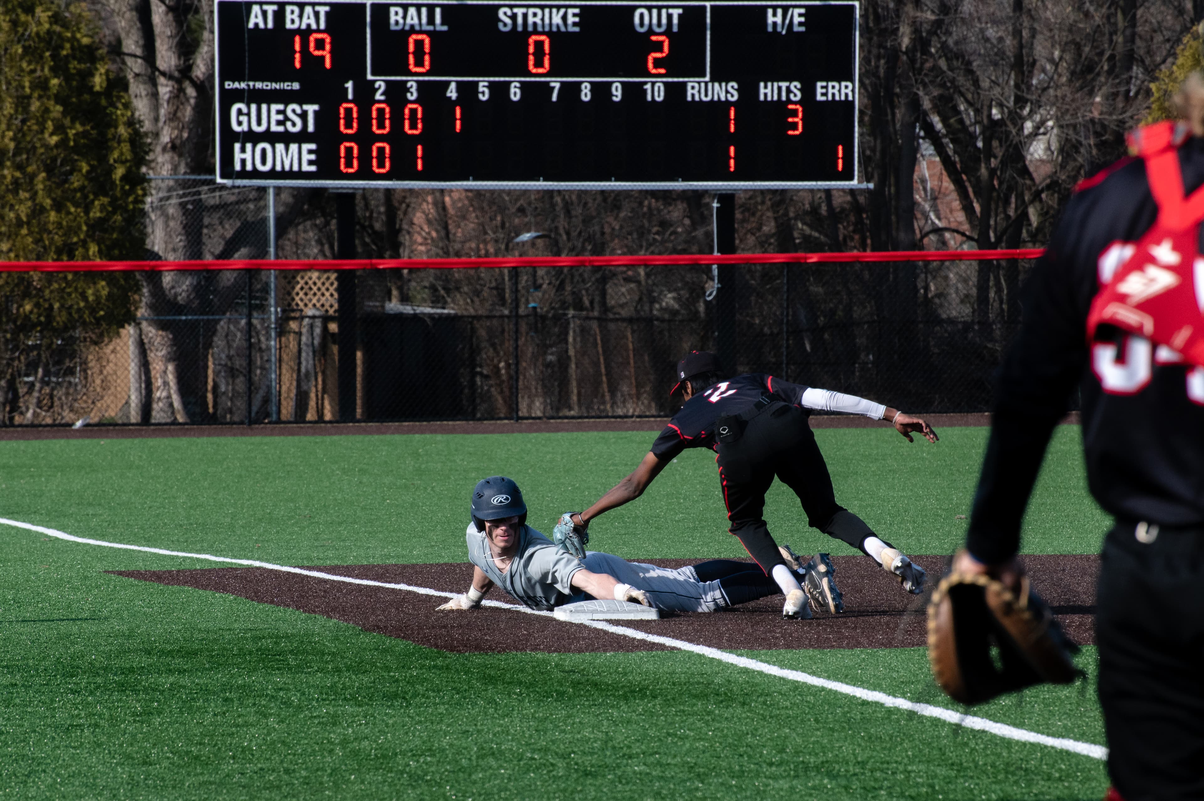The Rensselaer Engineers’ game against the Middlebury Panthers started with neither team scoring in the first two innings. During the bottom of the third, Rensselaer’s George Rainer flied out down the left field, allowing Cole Paquin to score from third. Middlebury responded in the top of the fourth when Nathan Samii scored his team’s first run. Middlebury’s Sammy Smith scored shortly after due to a fielding error, increasing the lead to 2‒1 by the end of the fourth inning.