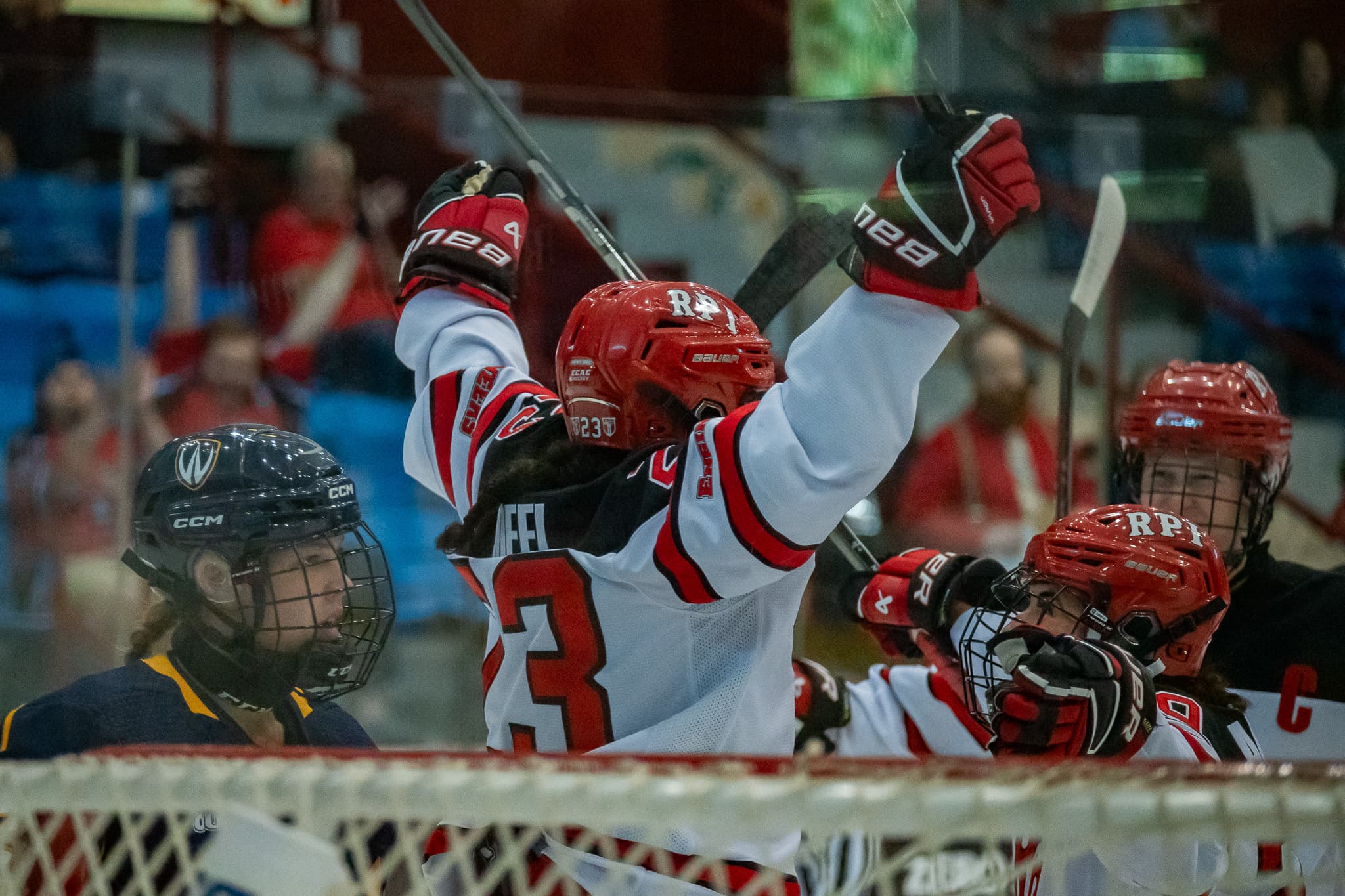 Nina Christoff, a returning player, commanded the offense for the Engineers, netting two goals and two assists for their victory. At the nine and a half minute mark in the first period, she was set up by Audrey McCutcheon to bury it in Windsor’s net for the first goal of the game. The next two goals were scored by Aylah Cioffi and Sabrina Beaudoin in the second period, with assists for both by first year Molly Hamilton, a promising new forward for the team. The third period saw Georgia Bailey score two goals, taking advantage of a clear Windsor net for one while sneaking the puck around the goalkeeper’s back for the other. Christoff also scored another goal and assisted both of Bailey’s, keeping the RPI offense strong for the whole game.