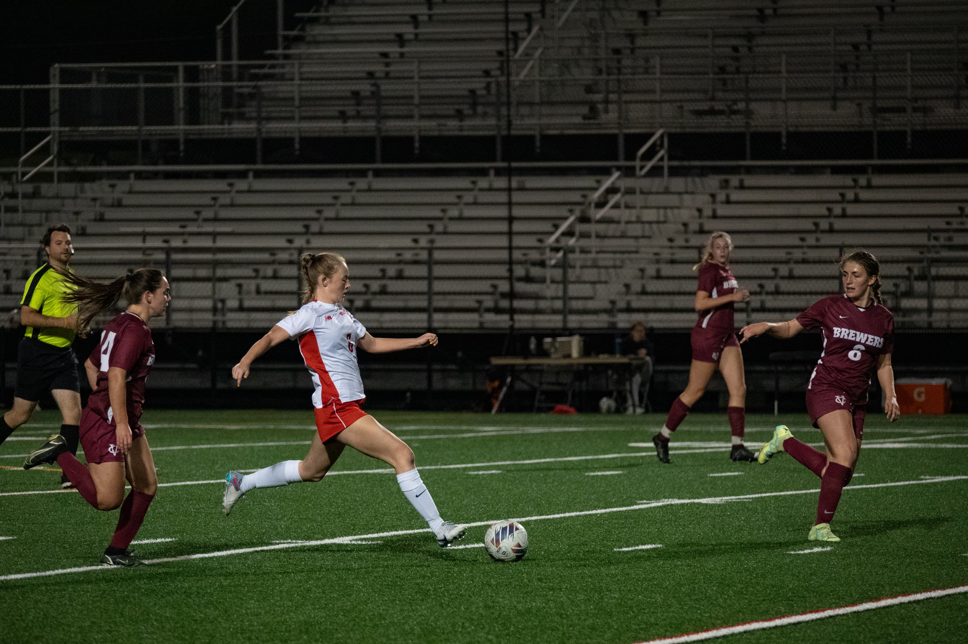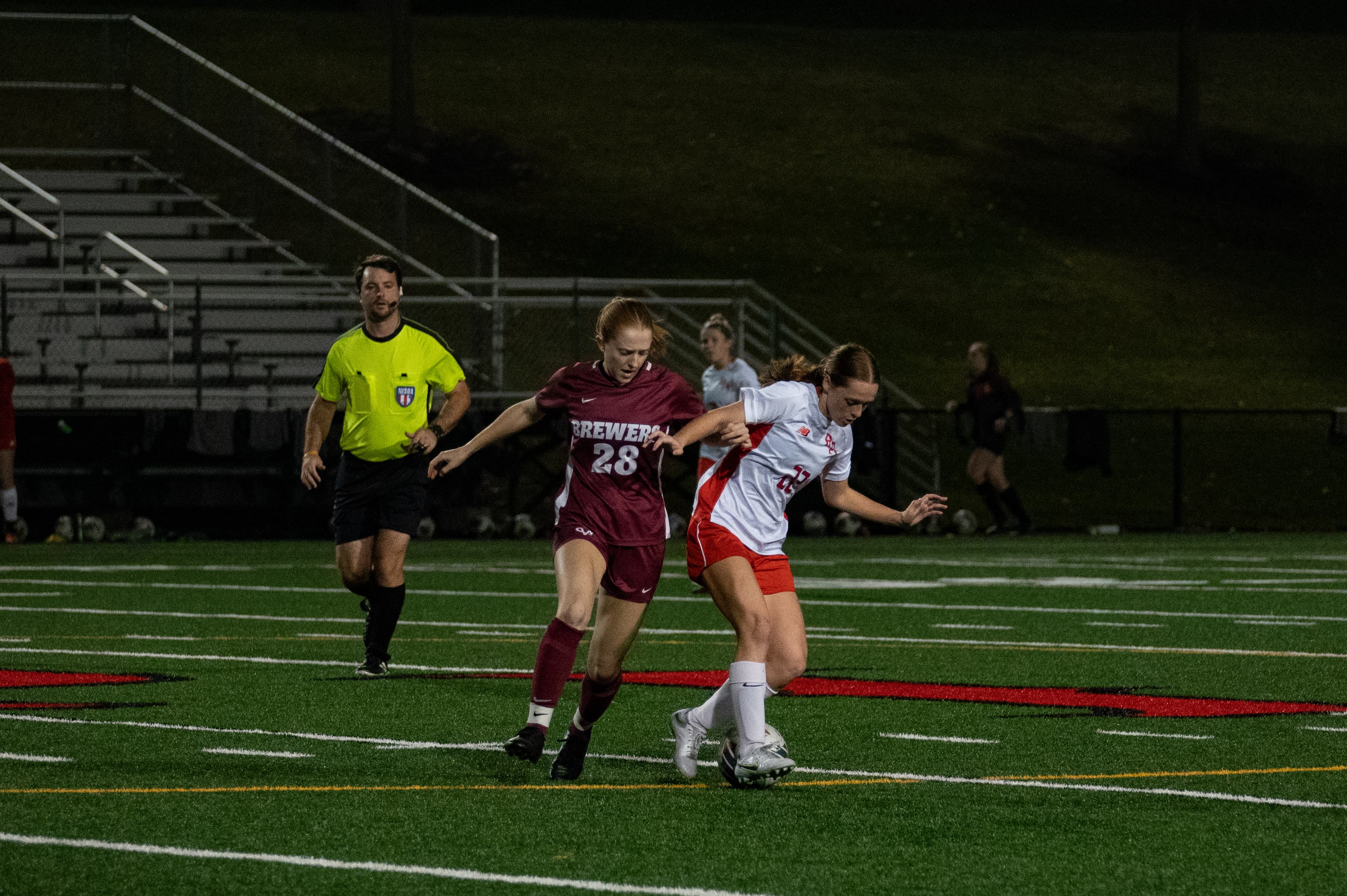 The second half included a yellow card for Vassar’s Jessica Bowman, with still no goals for either team. A tense faceoff almost saw action on the scoreboard, when substitute Engineer goalkeeper Megan Wampner rushed out of the goal for a one-on-one faceoff with Brewer Lucy Hart. Wampner overwhelmed Hart and stuffed the shot before Hart could take it. Aside from one last shot from Alice Crowley, this would mark the end of Vassar’s offensive attack, racking up only four shots in the second half.
