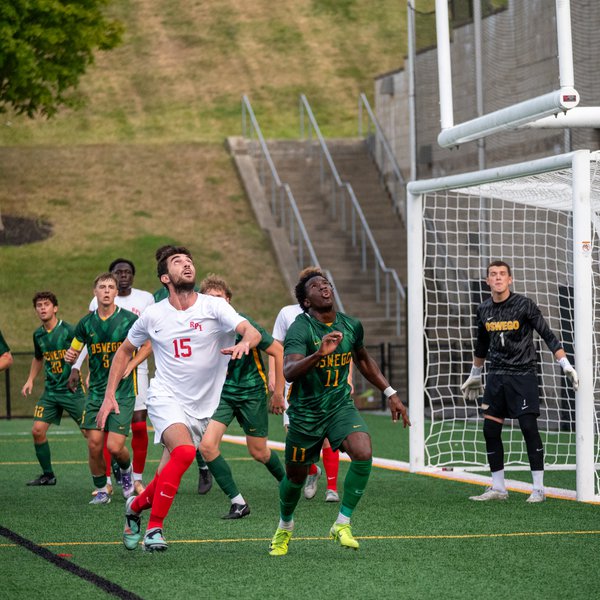 The game began conservatively, with both teams slowly moving the ball up the field, reluctant to take any of the openings given to them. The first attempted goal of the game occurred over halfway through the first half by Engineer Joshua Jarden, and both teams struggled to put together a string of efficient passes. The Engineers were dominant on defense, with Kedy Nana and goalkeeper Noah Churchhill teaming up for a block and recovery on a close-range shot from Oswego with eight minutes left in the half. Noah Gregory later pulled off a timely deflection to prevent a one-on-one for the Lakers.