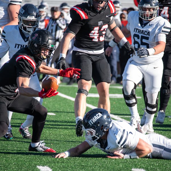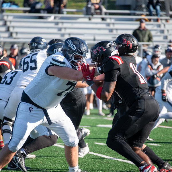 White ran in two of the three touchdowns for the Engineers in the game. He also netted 165 of the team’s 193 rushing yards. However, Ithaca’s defensive force was kicked into high gear, limiting quarterback Anthony DeMatteo to just 92 passing yards in comparison with Ithaca’s collective 248. Rensselaer managed a field goal in the second quarter, then White’s second touchdown in the third. By the start of the fourth quarter, the Engineers were still holding on to a 17-10 lead.